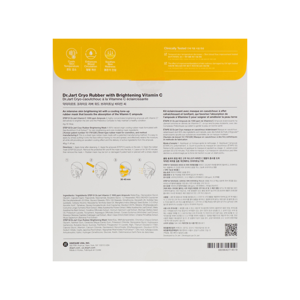 Маска для обличчя Dr.Jart+ Cryo Rubber With Brightening Vitamin C Альгінатна Освітлювальна 44 г (8809642714519) – це ідеальний засіб для відновлення здорового вигляду вашої шкіри. Альгінатна формула маски допомагає повернути шкірі життєву енергію, зволожує та освітлює її.