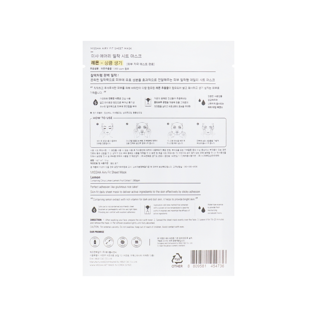 - Модель: Airy Fit Lemon Sheet Mask 19 г