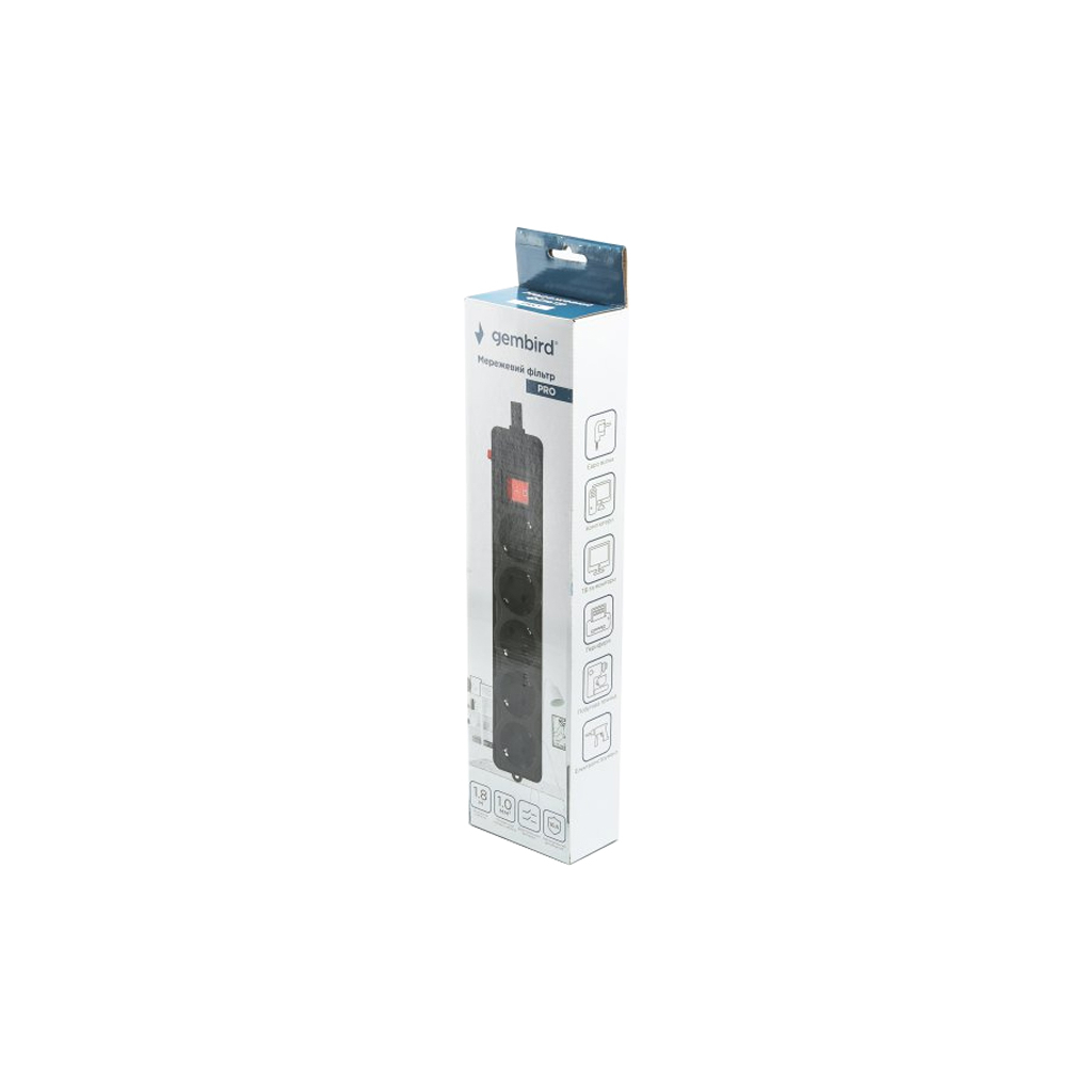 Мережевий фільтр живлення Gembird SPG5-G-6B-PRO – це надійний та зручний пристрій, призначений для забезпечення безпеки електроприладів у вашому домі чи офісі. Завдяки 5 євророзеткам із заземленням, ви зможете підключити кілька пристроїв одночасно, а довжина кабелю 1.8 метра дозволяє зручно розмістити фільтр у будь-якому місці.