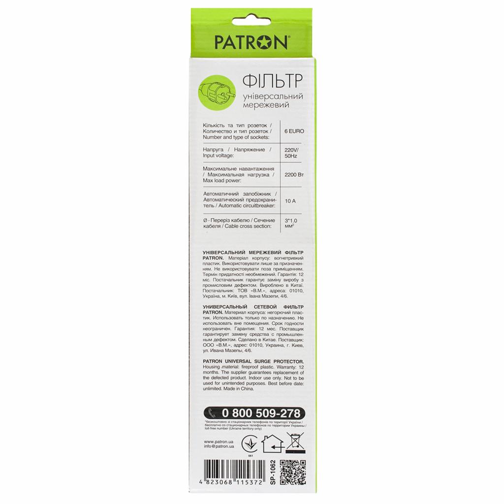 Мережевий фільтр Patron призначений для підключення широкого спектру побутової та комп’ютерної техніки. Фільтр має універсальні розетки типу “євро” з заземленням і захищає електронну техніку від короткого замикання, перепадів напруги і імпульсних перешкод.