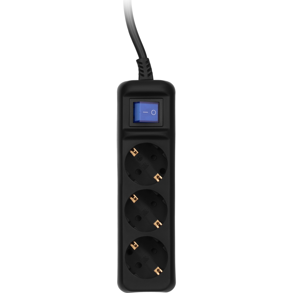 Надійний мережевий подовжувач 2E модель U03VES3MBK особливого дизайну, із заземленням, вимикачем із синім підсвічуванням і захисними шторками. Для вертикального кріплення передбачено отвори. Має три розетки типу Schuko (F). Призначено для побутових і комп’ютерних пристроїв. Колір виробу – чорний, довжина кабелю 3 м.