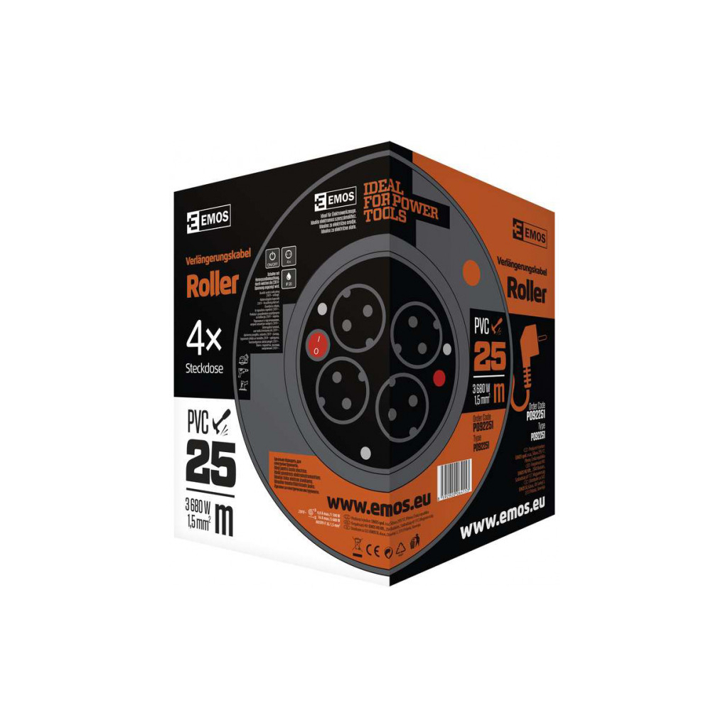 Основні технічні характеристики EMOS катушка 4 роз., 25 м включають: