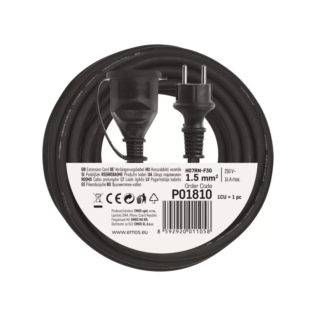 Подовжувач P01820 від чеського виробника EMOS. Компактна переносна розетка із заземленням дає змогу швидко під’єднати прилад для використання на відстані. Розетка подовжувача рейтинг захисту IP44.
