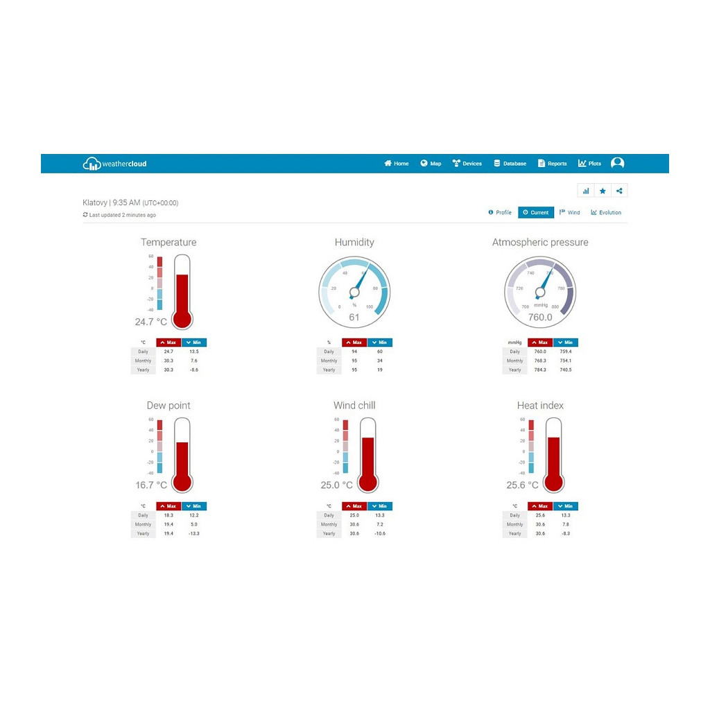 - Вимірювання внутрішньої та зовнішньої вологості (діапазон: 1 % … 90 %)