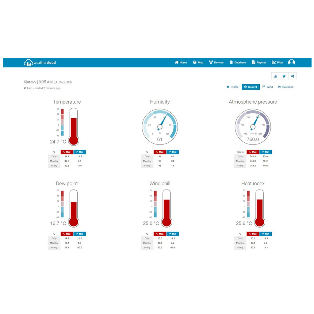 - Діапазон температури: -5 до 50°C (внутрішня), -40 до +80°C (зовнішня)