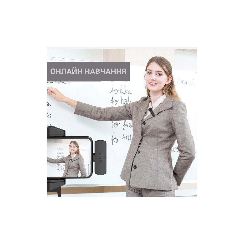 Fififne M6 – універсальний петельний бездротовий мікрофон, сумісний із телефонами Android через USB Type-C порт і з iPhone через перехідник. Автономний час роботи до 6 годин без перерви. Пристрій чудово підходить для YouTube/Instagram/TikTok трансляцій, відеоконференцій або аудіозапису. Відстань для якісного передавання звуку досягає 20 м без бар’єра.