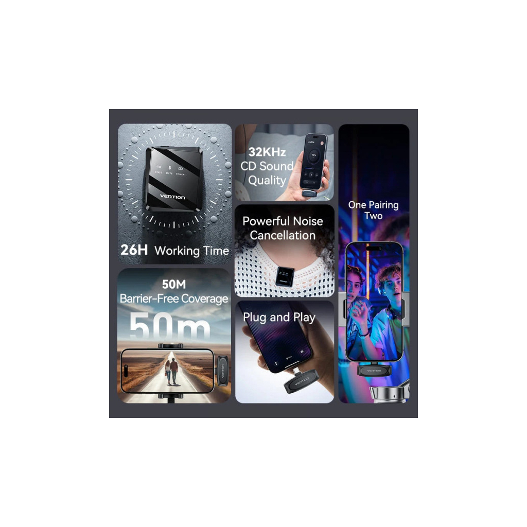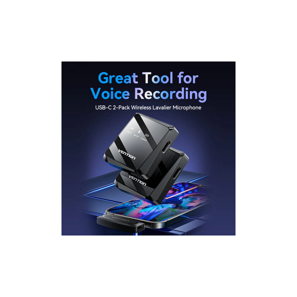 Цей мікрофон є відмінним вибором для тих, хто цінує якість звуку та зручність використання. Завдяки бездротовій технології, ви можете вільно рухатися під час запису, а також легко підключати його до сучасних пристроїв з USB Type-C. Vention USB-C 2-Pack Wireless Lavalier Black – це надійний інструмент для створення професійного контенту.