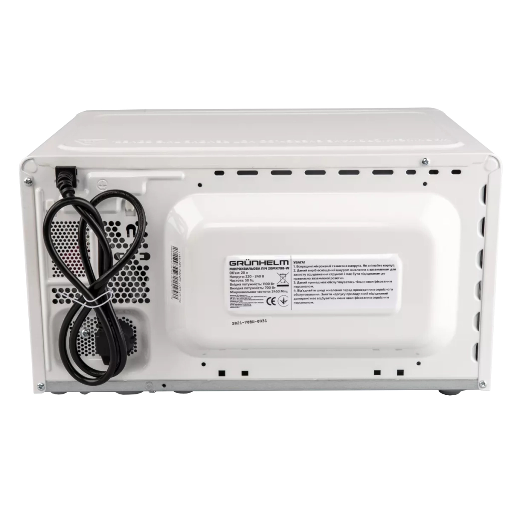 Мікрохвильова піч Grunhelm 20MX708-W – це ідеальне рішення для швидкого та зручного приготування їжі. Завдяки своїй потужності 700 Вт та об'єму 20 л, вона забезпечує ефективне розігрівання та розморожування продуктів, що робить її незамінним помічником на кухні.