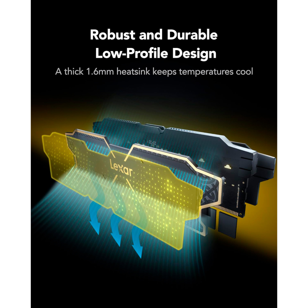 Від змагальних ігор до вимогливої творчої роботи – будьте готові до підвищення продуктивності в усьому за допомогою 2 x 16 ГБ пам’яті Lexar Thor DDR5 Desktop Memory. Оцініть вищу продуктивність завдяки швидкості до 6000 МТ/с і низькому таймінгу CL32. Інноваційна тепловідвідна конструкція зберігає систему холодною для тривалої роботи. Крім того, вона сумісна з материнськими платами DDR5, підтримує XMP 3.0 і розгін AMD EXPO.