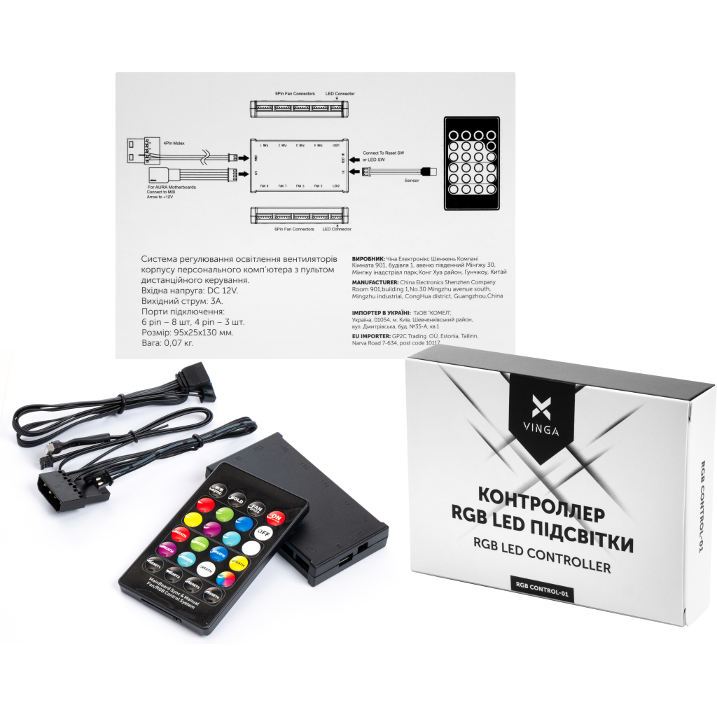 Модуль управління підсвічуванням Vinga RGB control-01 – це ідеальне рішення для створення атмосферного освітлення у вашому домі. Цей внутрішній модуль дозволяє з легкістю керувати підсвічуванням за допомогою зручного пульта дистанційного керування, що робить його незамінним елементом для будь-якого інтер'єру.