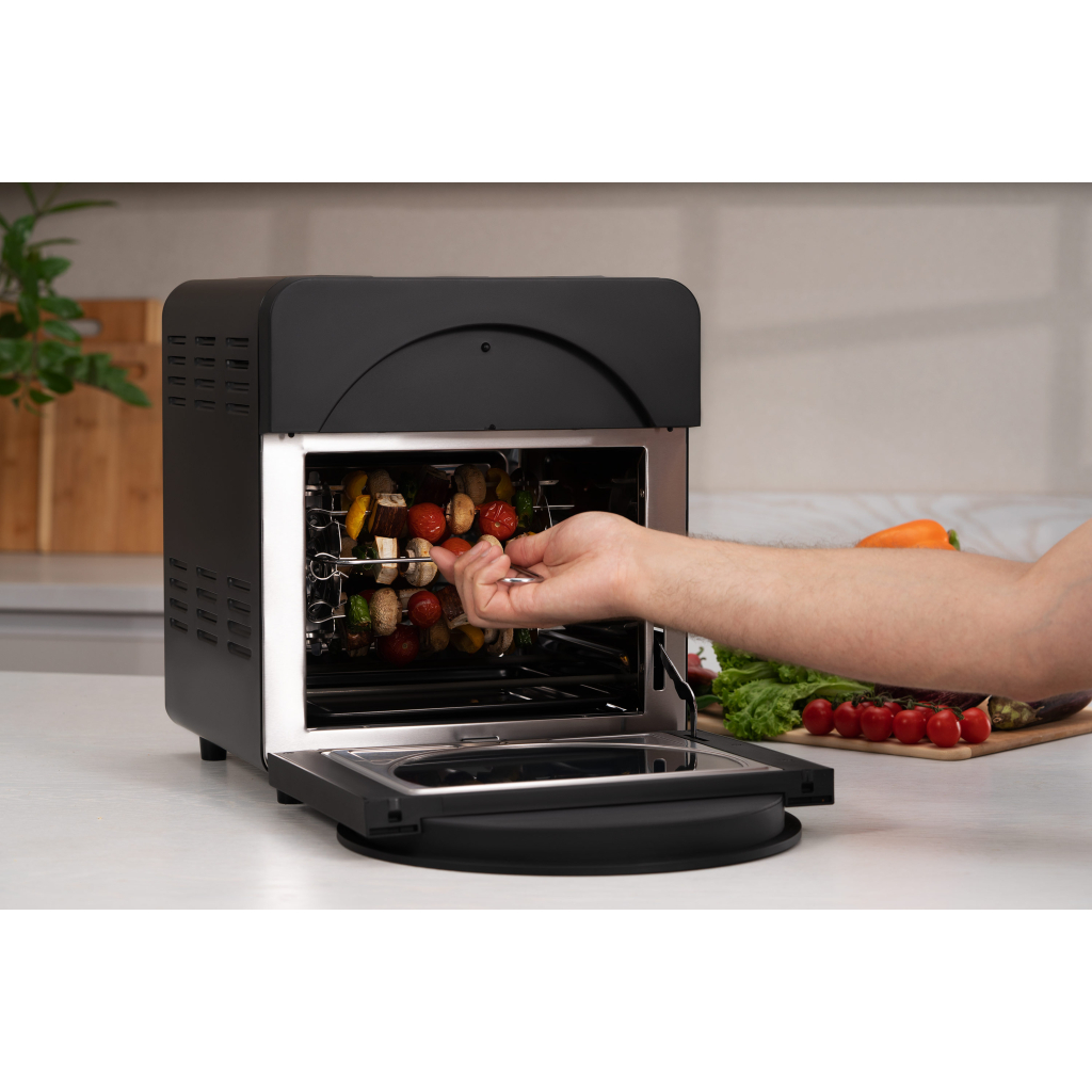 Інноваційні функції, такі як обертання рожна, відкладений старт, розморожування та підтримання температури, а також наявність LED-дисплея, внутрішнього освітлення та сенсорне керування роблять приготування неймовірно легким. Тоді як індикація закінчення процесів, запобіжний вимикач та захист від перегріву зумовлюють безпеку користування.