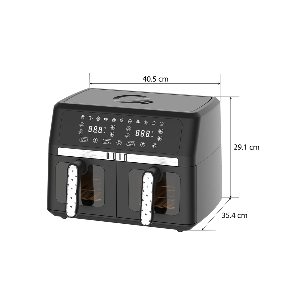 QUIN YJ-1102AV – це сучасний кухонний гаджет, створений для максимальної зручності та ефективності приготування їжі. Завдяки двом окремим кошикам об’ємом по 4,5 л ви можете одночасно готувати різні страви, зберігаючи їхній натуральний смак і текстуру. Інноваційна система циркуляції гарячого повітря забезпечує рівномірне приготування, а потужність 1700 Вт дозволяє значно скоротити час на кухні. Загальний об’єм 9 л – ідеальне рішення для великих родин або приготування кількох страв одночасно.