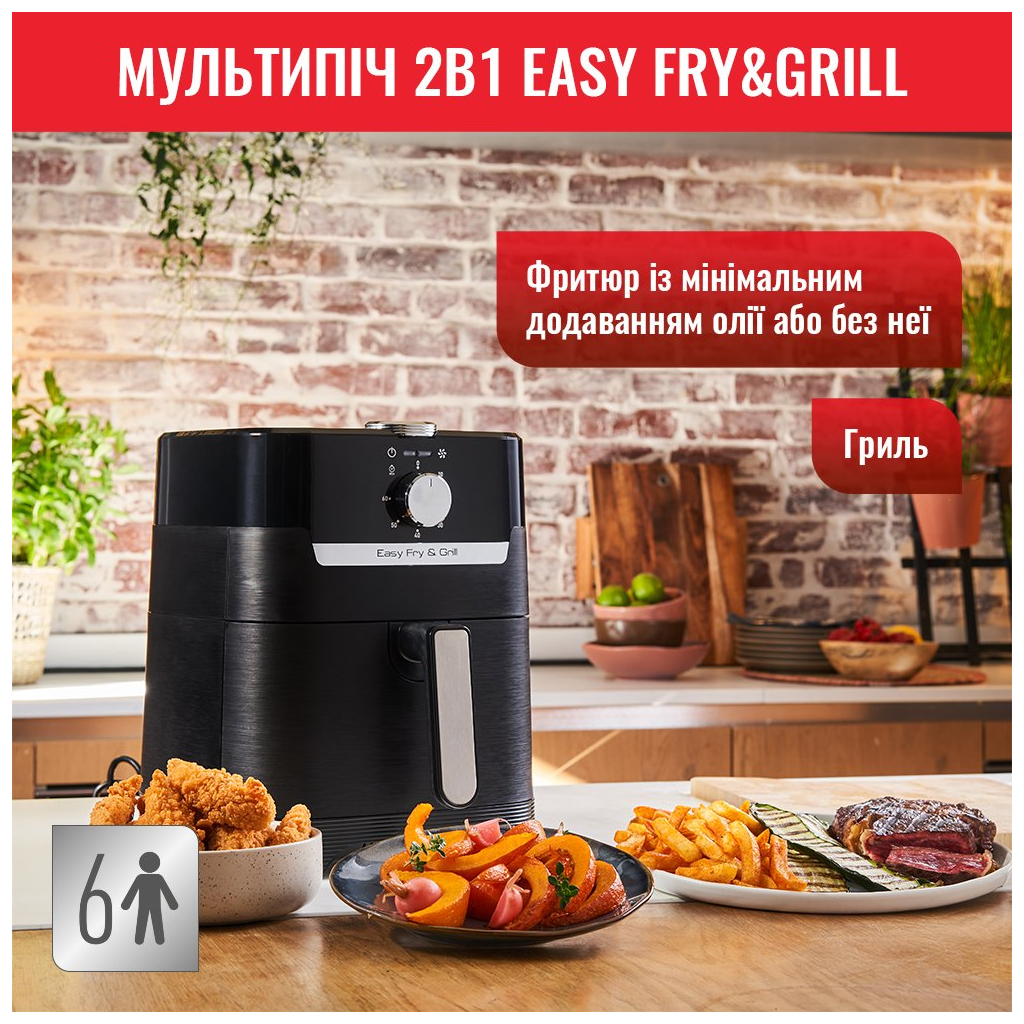 Fry & Grill EY501815 поєднує в собі фритюрницю та гриль для здорового смаження з мінімальним вмістом олії або без неї, а також бездоганне приготування на грилі у вас на кухні. Це ідеальна альтернатива класичній духовці, яка забезпечує швидкі результати із меншим споживанням енергії.