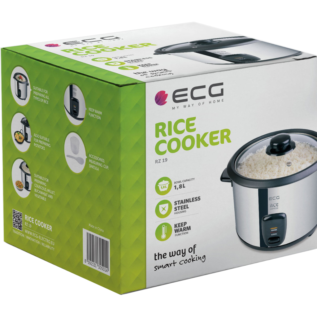 Мультиварка ECG RZ 19 (RZ19) – це ідеальний помічник на вашій кухні, який дозволяє легко і швидко приготувати смачний рис. Завдяки потужності 700 Вт і ТЕН-нагріву, ця рисоварка забезпечує рівномірне приготування та підтримання оптимальної температури. Об’єм чаші 1.8 л дозволяє приготувати достатню кількість рису для всієї родини.