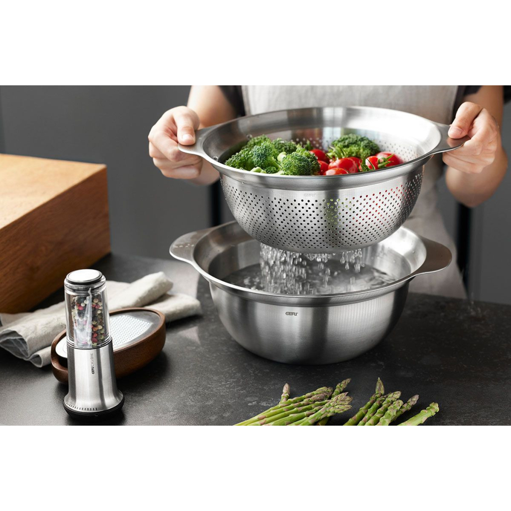 Миска Gefu Premio з нержавіючої сталі 23 см (28133) – це ідеальне поєднання елегантності та функціональності для вашої кухні. Виготовлена з високоякісної нержавіючої сталі, ця миска забезпечує довговічність та стійкість до корозії. Завдяки об’єму 1,5 літра та діаметру 23 см, вона підходить для приготування різноманітних страв, від салатів до тесту. Особливості: