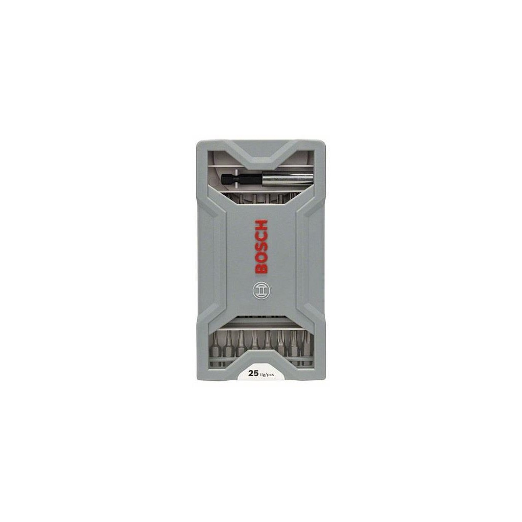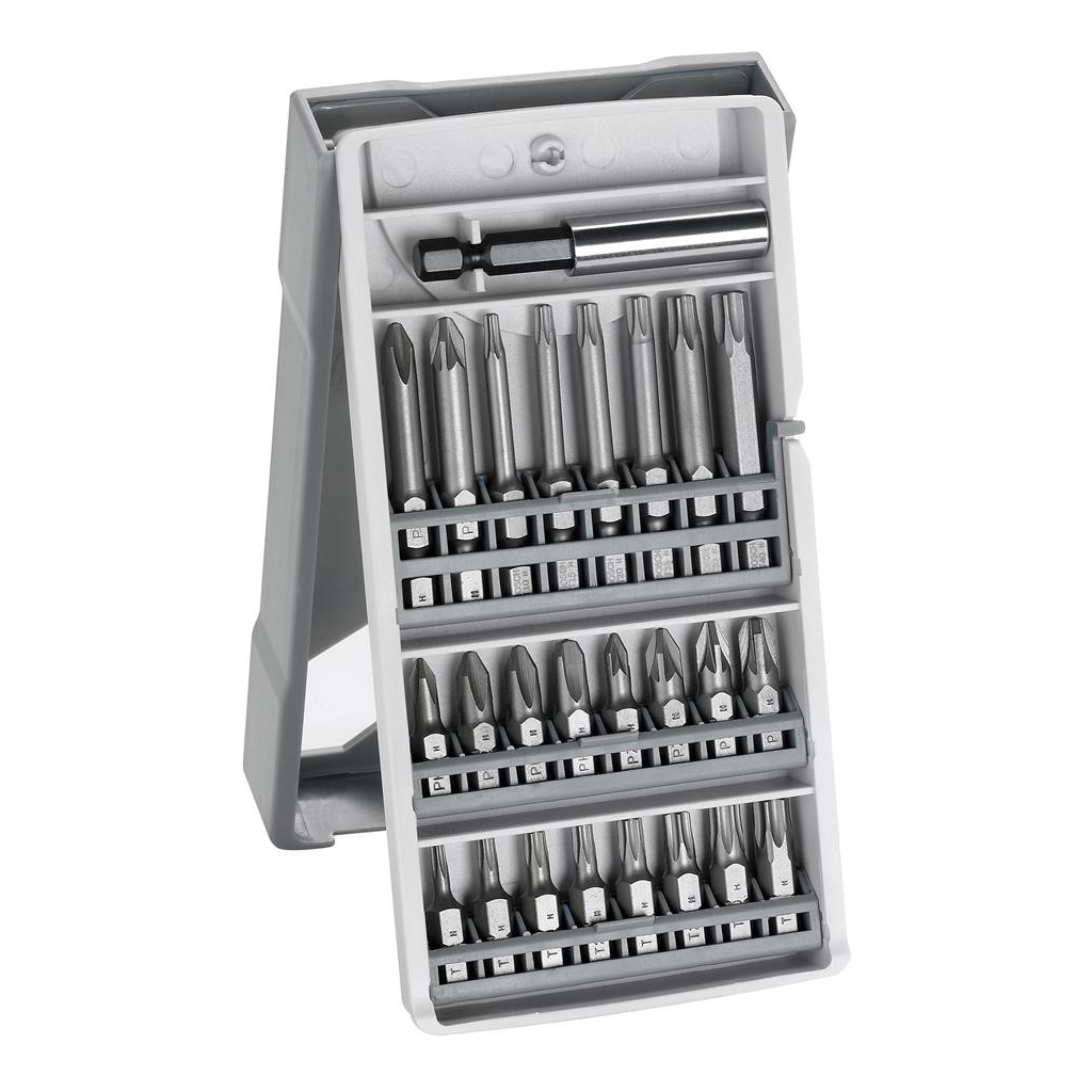 Набір біт Bosch Mini X-Line Extra Hard, з універсальним магнітним тримачем, 25 шт. 2.607.017.037. Набір насадок для викрутки X-Pro Line з 25 предметів, включаючи тримач для насадок. Ця наджорстка насадка для викрутки є хорошим вибором для універсального використання. Усі завдання досяжні завдяки модифікованій сталі S2 насадки та оптимізованому процесу термічної обробки, що забезпечує надтверду якість і належну продуктивність. Конічна торсіонна зона наконечника легко справляється з піками крутного моменту, поглинаючи силу та вібрацію під час загвинчування, виконуючи всі завдання.