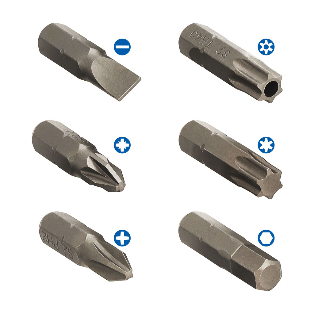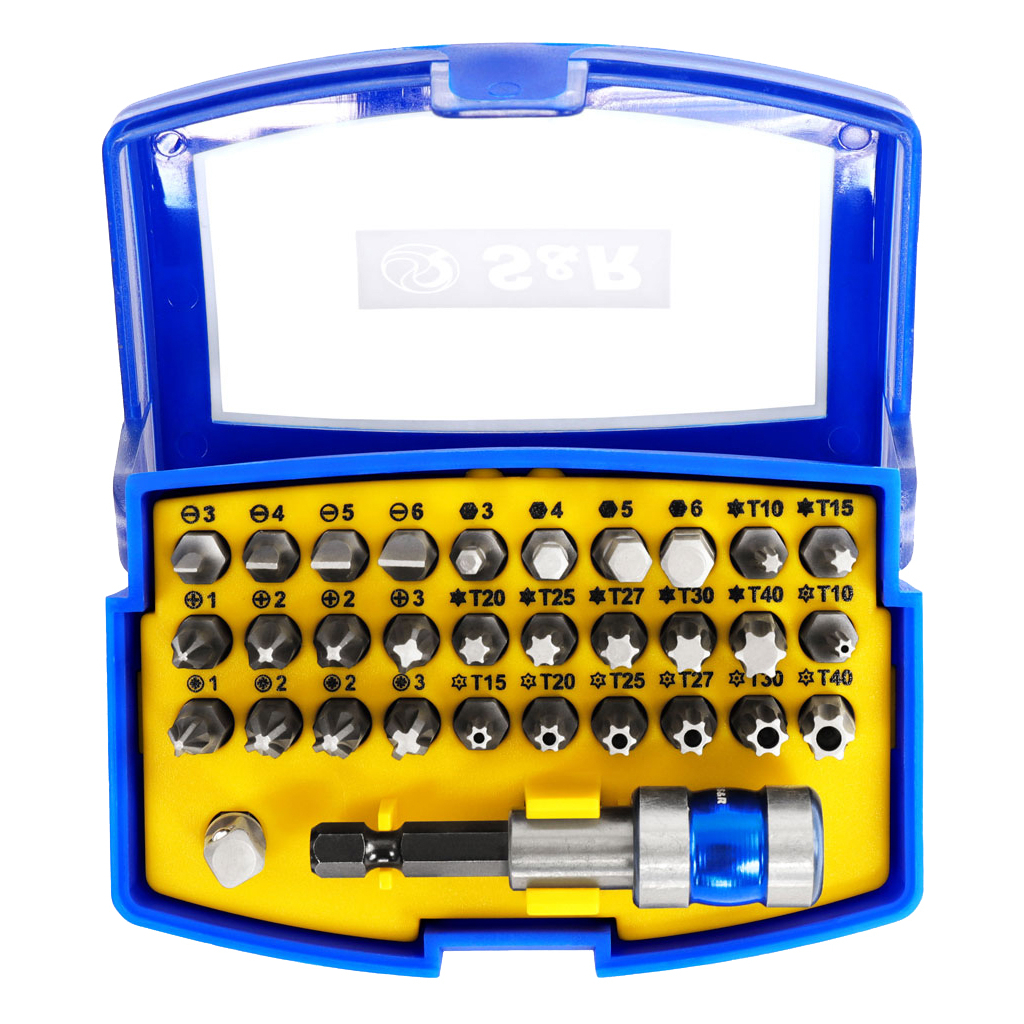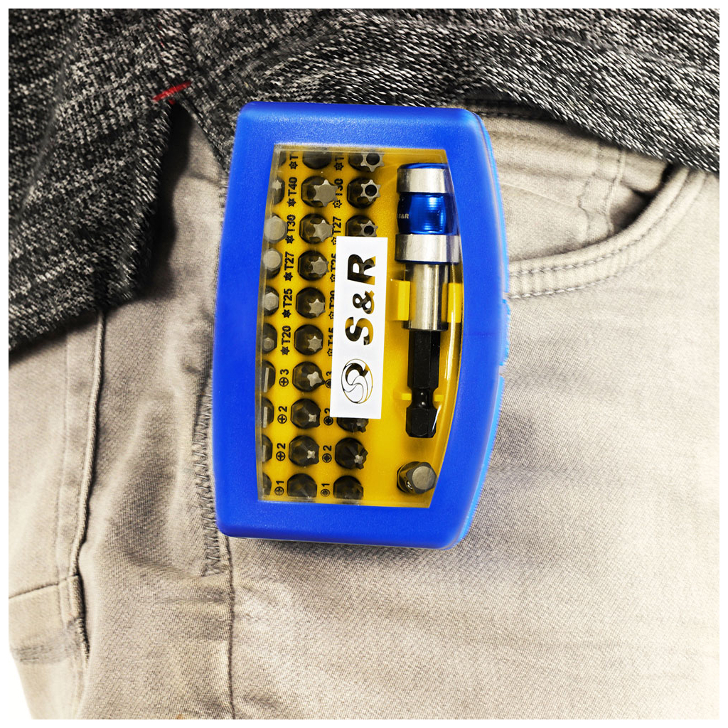 Набір біт S&R виготовлений зі сталі S2 твердістю 55-62 HCR і призначений для професійного використання.