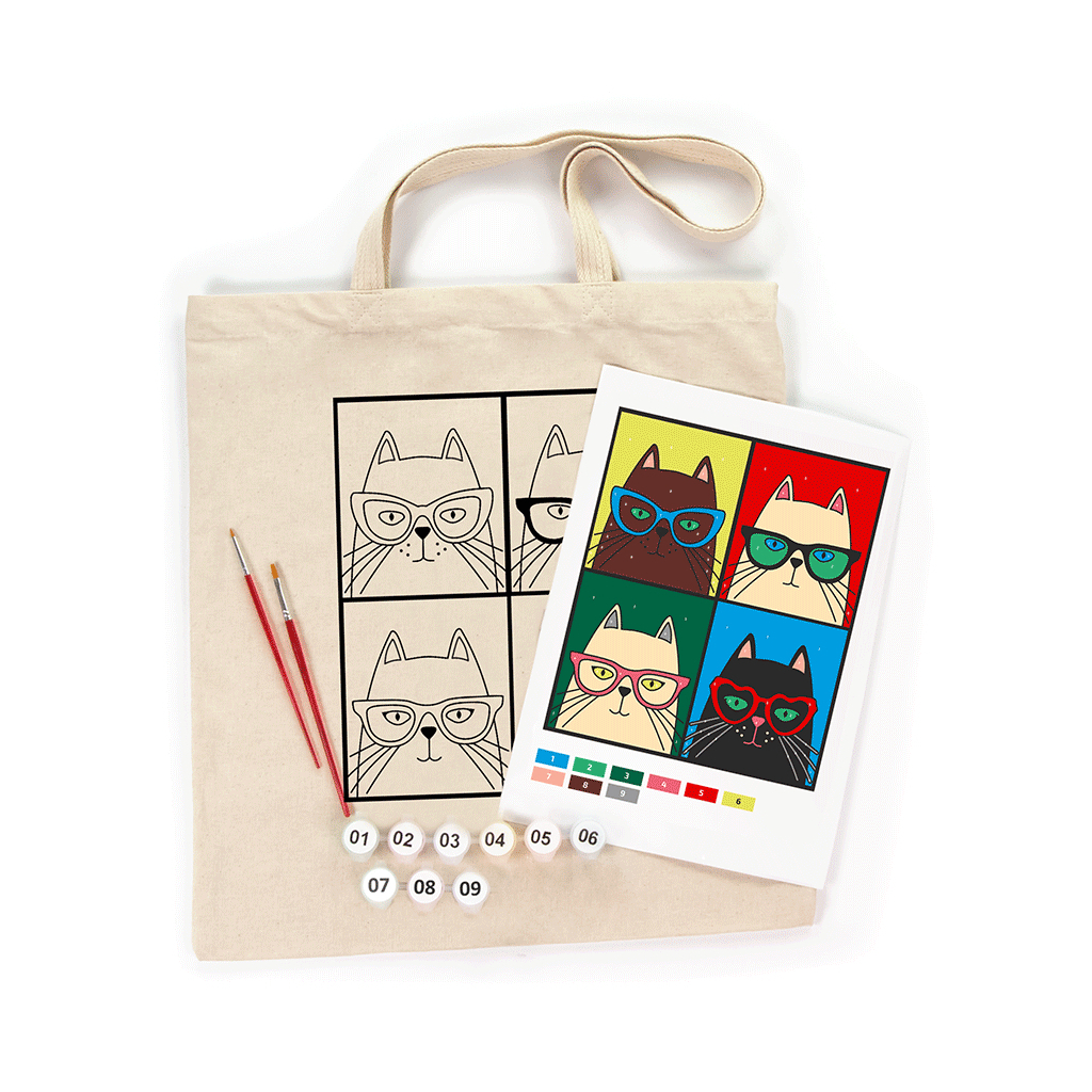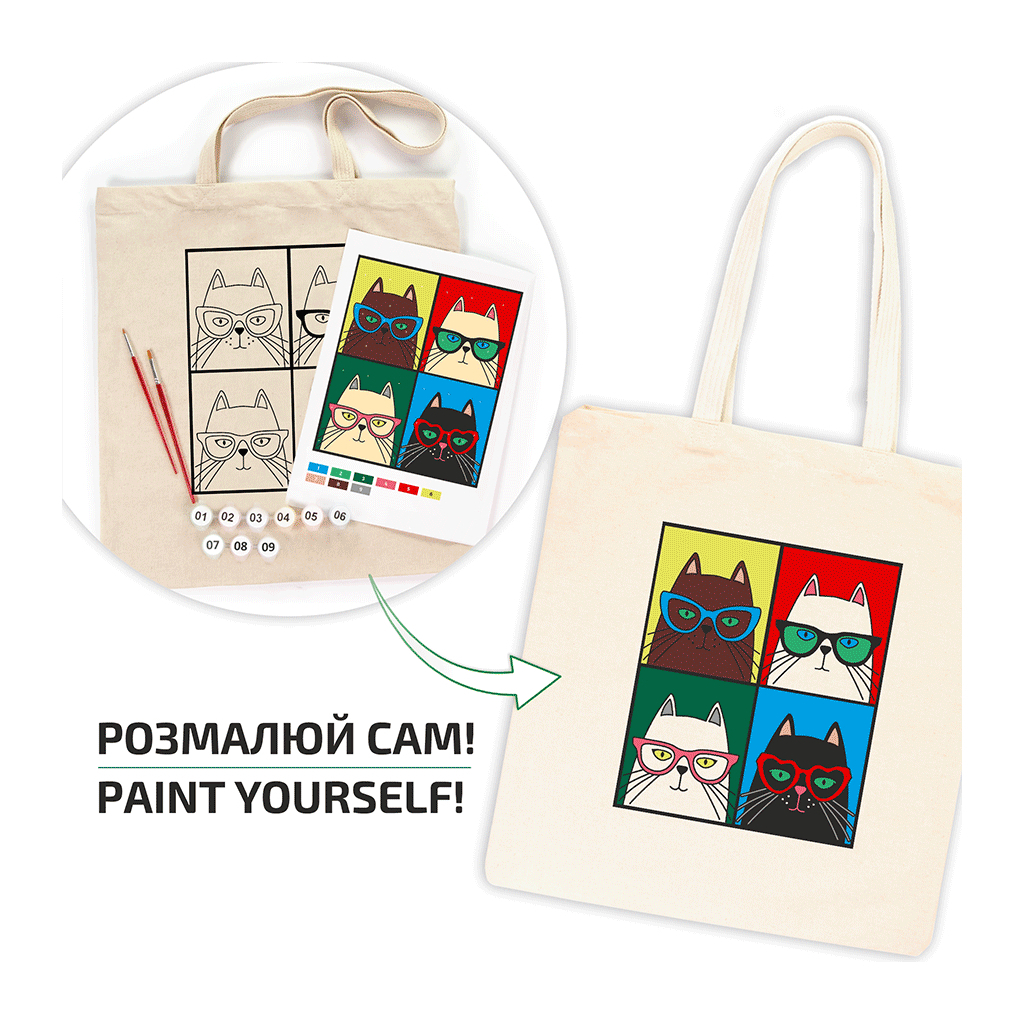 - Модель: Talent екосумка-розмальовка, Коти в окулярах