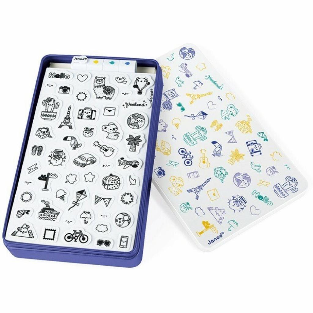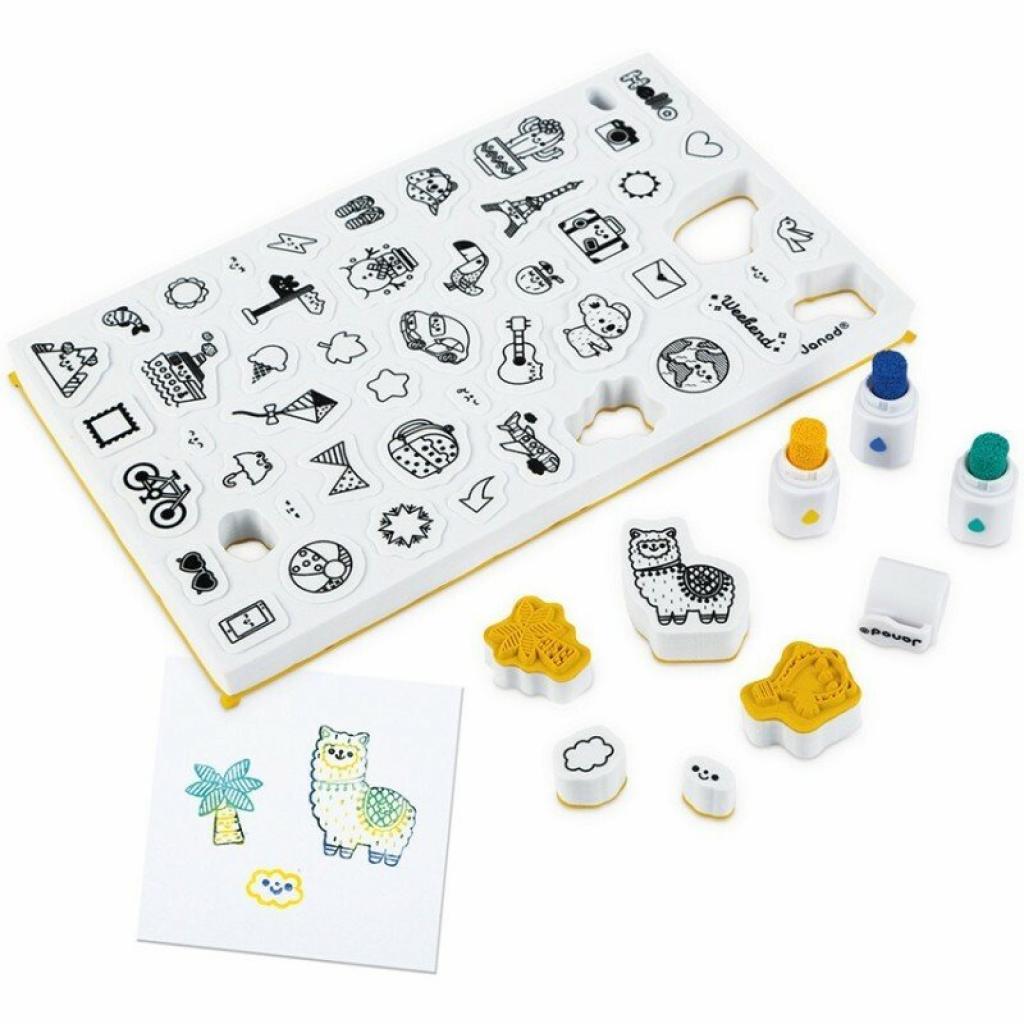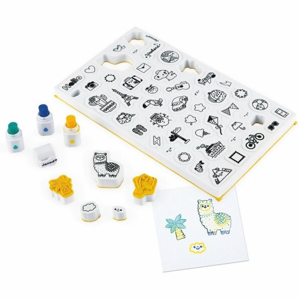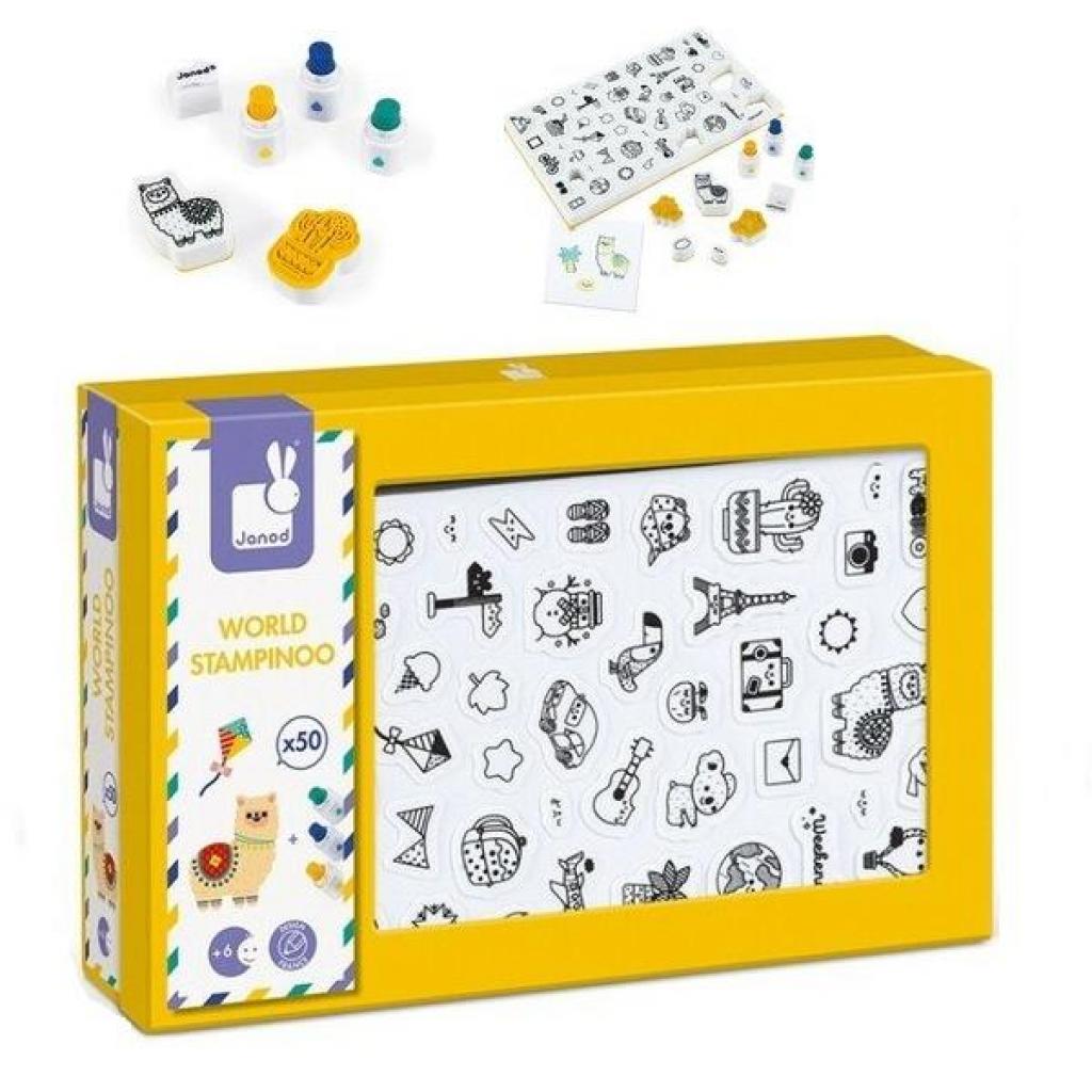 Набір для творчості Штампи Світ від французького бренду Janod – це чудовий спосіб розвивати творчі здібності дітей. У комплекті ви знайдете 50 невеликих пінопластових штампів з різноманітною графікою, що відображає тематику подорожей по всьому світу. Штампи виготовлені з приємного на дотик еластичного пінопласту, що забезпечує легкість у використанні.