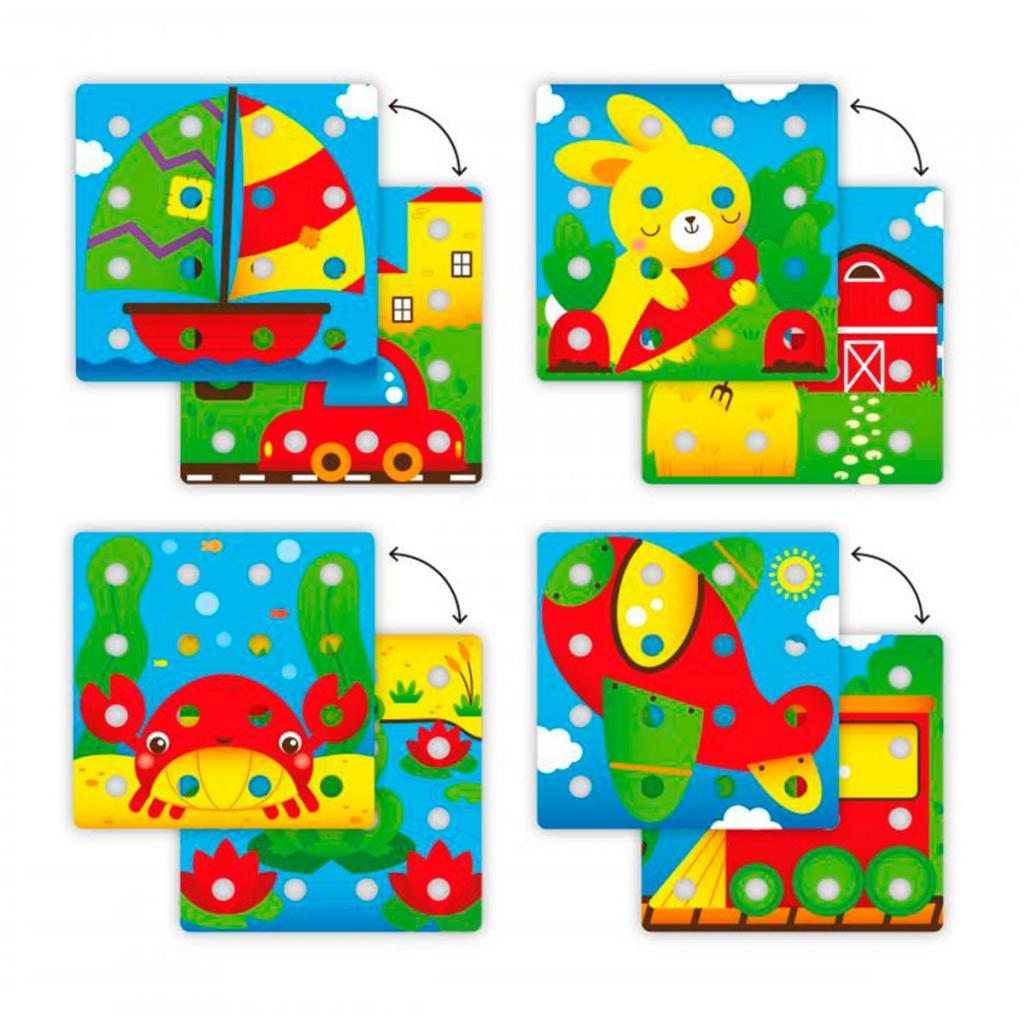 Завдяки мозаїці в дитини сформується художній смак, розвинеться дрібна моторика, зорово-моторна координація, акуратність і точність, увага та творчий пошук. Усі іграшки компанії Quercetti проходять обов’язкову апробацію в дитячих садках і школах перед запуском у серійне виробництво. Весь процес виробництва іграшок від проєктування до упаковування готових виробів проходить на фабриці Quercetti в місті Турині (Італія). Рекомендовано для дітей від 2 років.