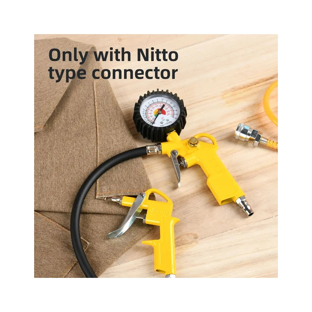 Цей набір розроблений для бездоганної сумісності із з’єднувачами типу Nitto, що робить його незамінним помічником у вашій майстерні чи гаражі. Поставляється у кольоровій коробці, готовий до використання одразу після розпакування. Оберіть якість, на яку можна покластися!