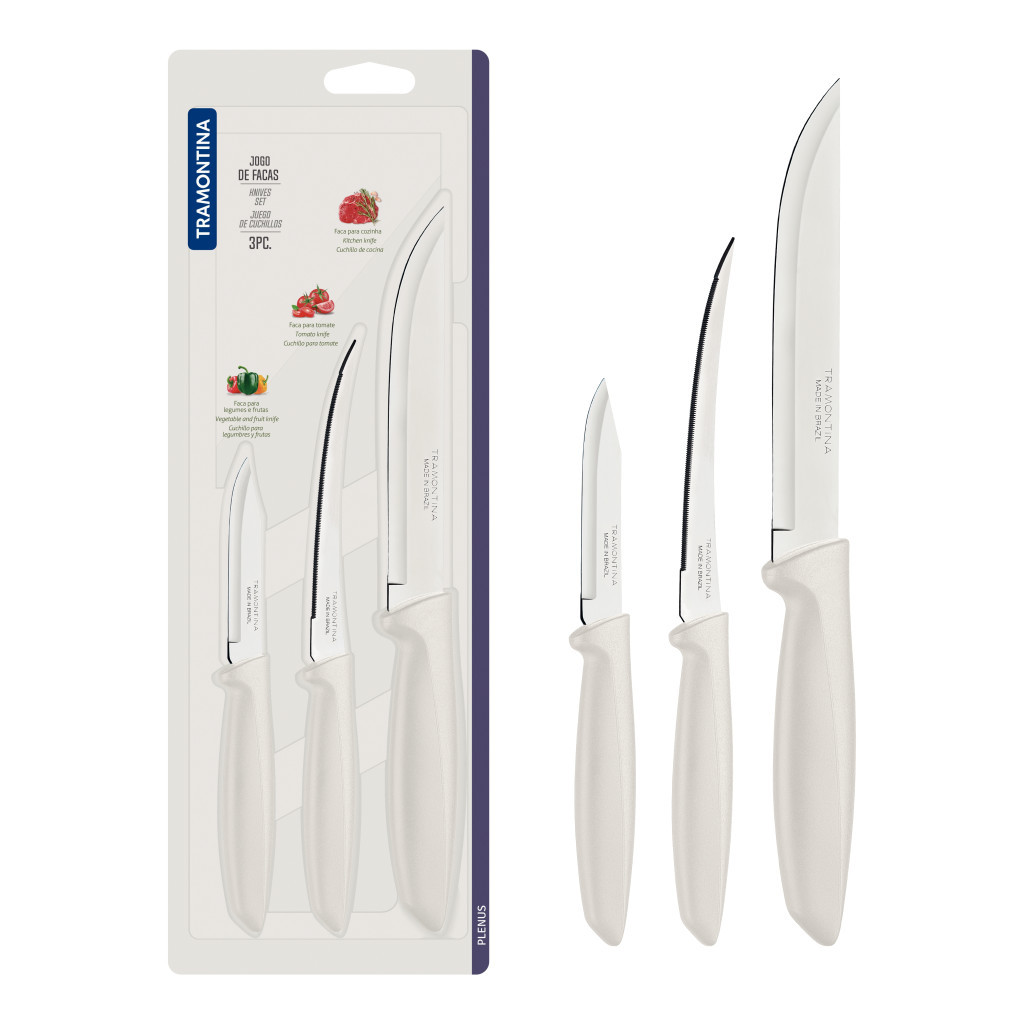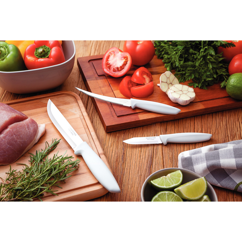 Набір ножів Tramontina Plenus Light Grey – це ідеальний вибір для кожної кухні. Бренд Tramontina, заснований у Бразилії в 1911 році, славиться своєю якістю та інноваціями. Ножі виготовлені з 18/10 нержавіючої сталі, що забезпечує їхню довговічність та стійкість до корозії. Кожен ніж має ергономічну ручку з поліпропілену, що забезпечує комфорт під час використання.