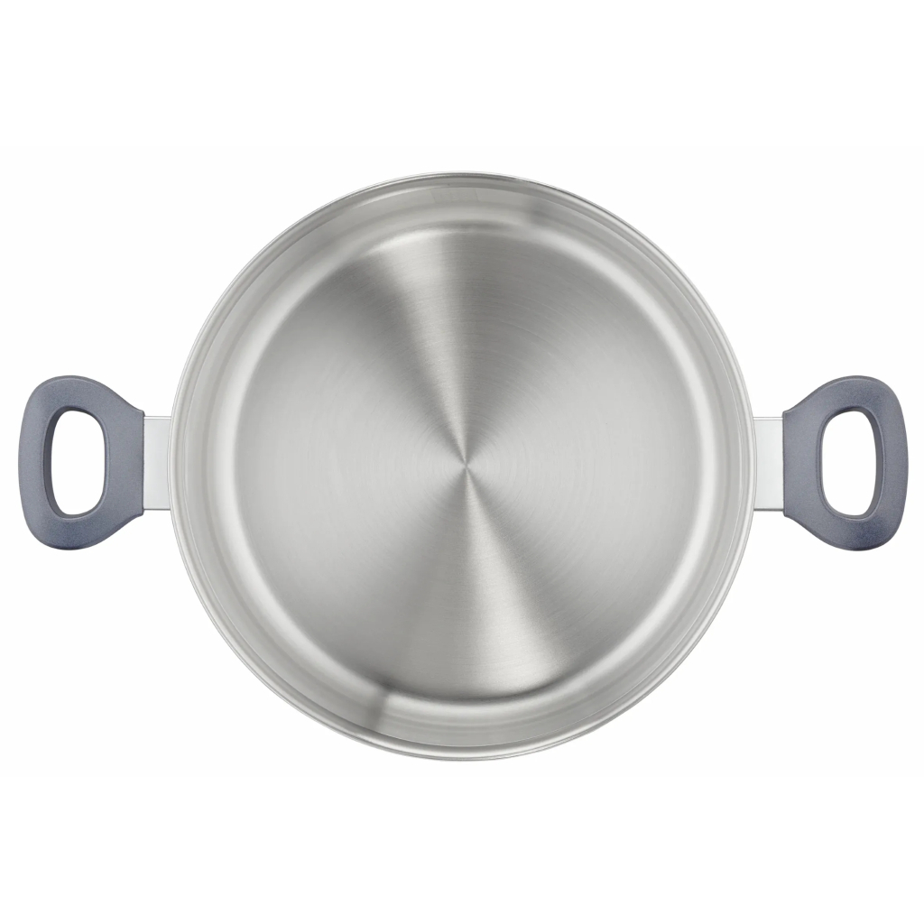 Набір посуду Tefal Daily Cook з 10 предметів виготовлений із нержавіючої сталі та розрахований на щоденне використання. У комплекті ви знайдете 4 каструлі, ковш і 5 скляних кришок із паровідводом. Товсте дно Full Induction забезпечує рівномірний нагрів, а мірні поділки всередині, ергономічні ручки, що залишаються холодними, та «напівстійка» кришка роблять процес приготування більш зручним.