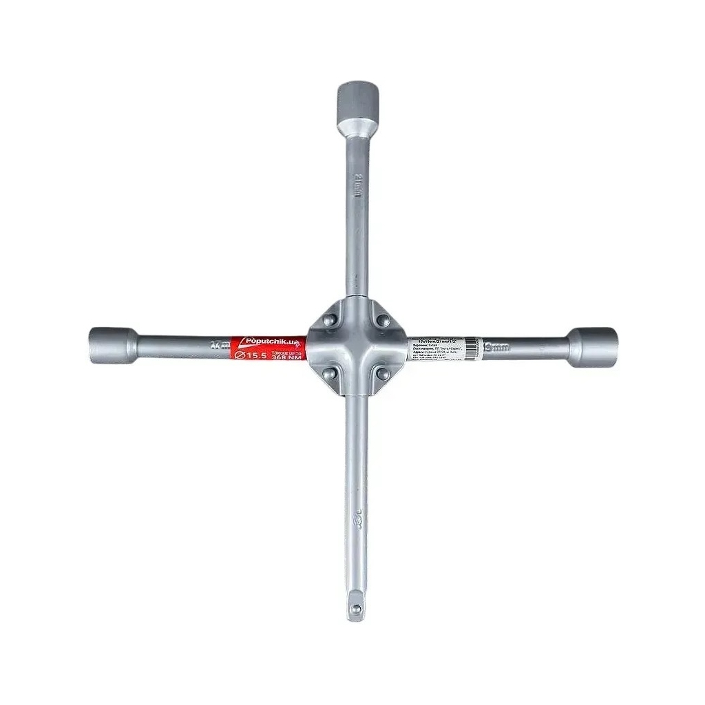 - Ключ колісний посилений хрестоподібний Poputchik: розміри: 17х19 мм, 21 мм, 1/2″, виконаний із загартованої сталі для довговічності та надійності.