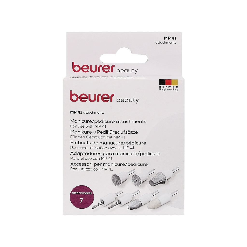 Набір насадок для манікюру та педикюру MP 41 від бренда Beurer створений як для професійних майстрів, так і для початківців. З ним ви зможете безпечно та акуратно виконувати апаратну чистку та підпилювання. Обирайте відповідну насадку та здійснюйте обпилювання країв нігтів, знімайте ороговілі клітини, усувайте мозоль, знімайте нарощені нігтьові пластини тощо.