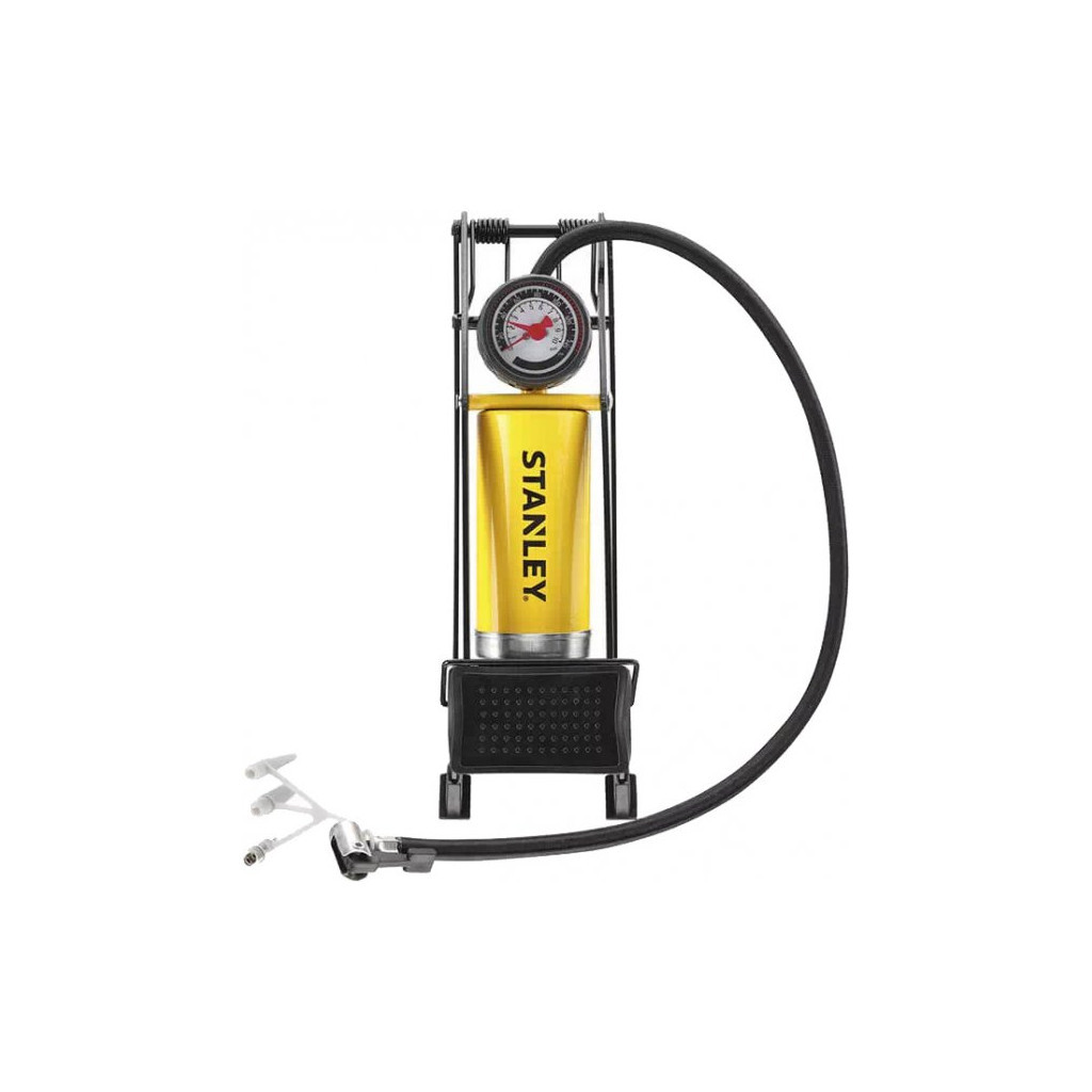 Насос ножний Stanley STHT80894-1 – це надійний механічний насос, призначений для швидкого та ефективного накачування повітря у різні вироби, такі як автомобільні шини, спортивні м'ячі та інші надувні предмети. Завдяки максимальному тиску в 7 Атм, ви зможете легко досягти необхідного рівня накачування.