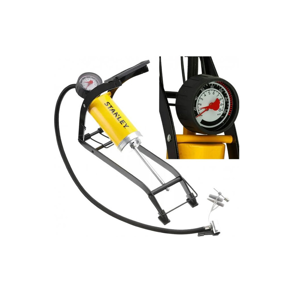 Цей насос має ряд особливостей, які роблять його зручним у використанні. Ножна конструкція дозволяє накачувати повітря без зайвих зусиль, а вбудований манометр допомагає контролювати тиск. Компактний розмір та легка вага роблять його ідеальним для транспортування, а різноманітні матеріали корпусу забезпечують довговічність та стійкість до механічних пошкоджень. Насос Stanley STHT80894-1 стане незамінним помічником для кожного, хто цінує якість та ефективність.