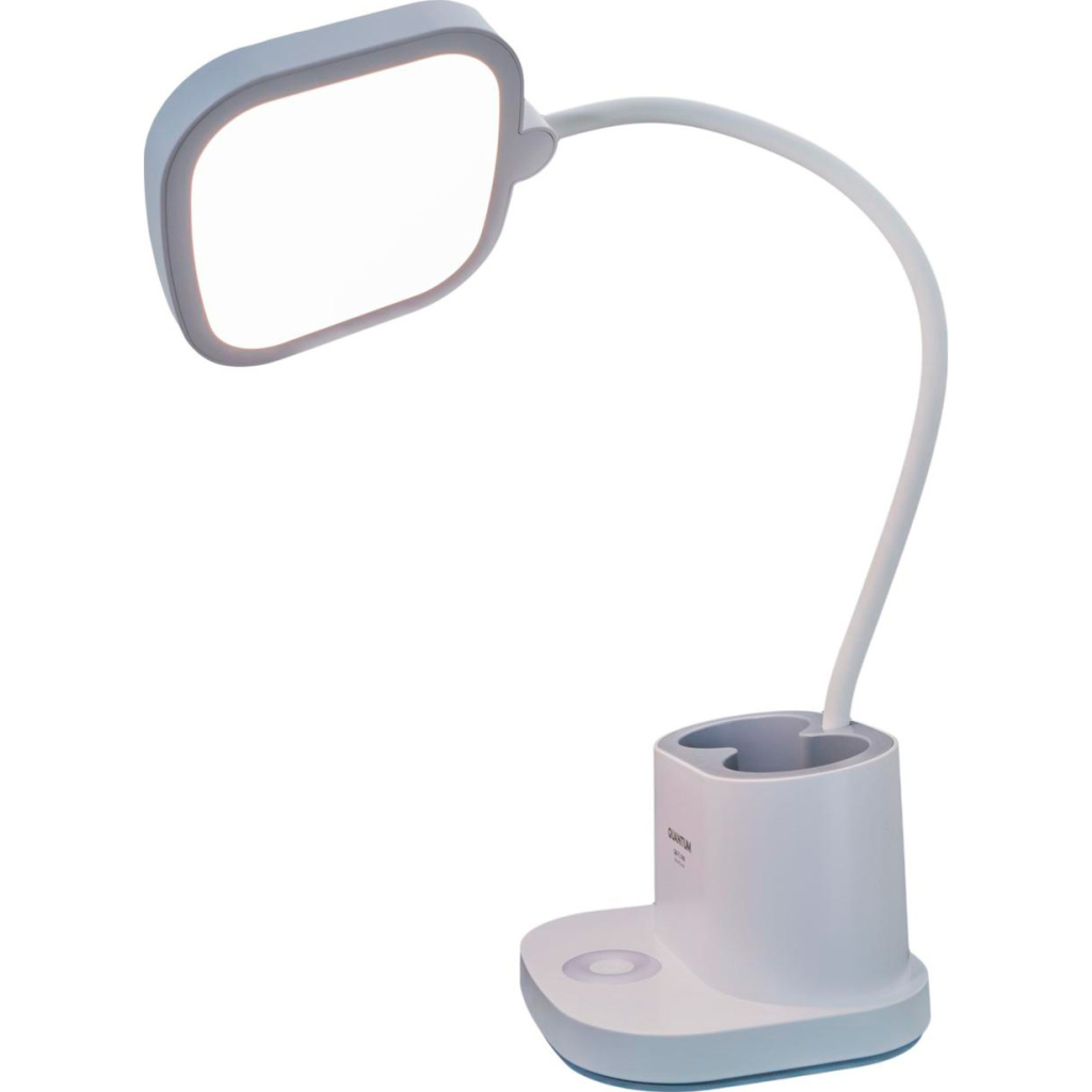 Лампа оснащена LED-стрічкою потужністю 3.5 Вт з нейтральним білим світлом, що забезпечує комфортне освітлення. Вона має вбудований акумулятор ємністю 3000 mAh, що дозволяє використовувати її як PowerBank для заряджання мобільних пристроїв. Сенсорний вимикач та регулятор яскравості забезпечують зручність у використанні, а гнучка ніжка дозволяє налаштовувати напрямок світла.