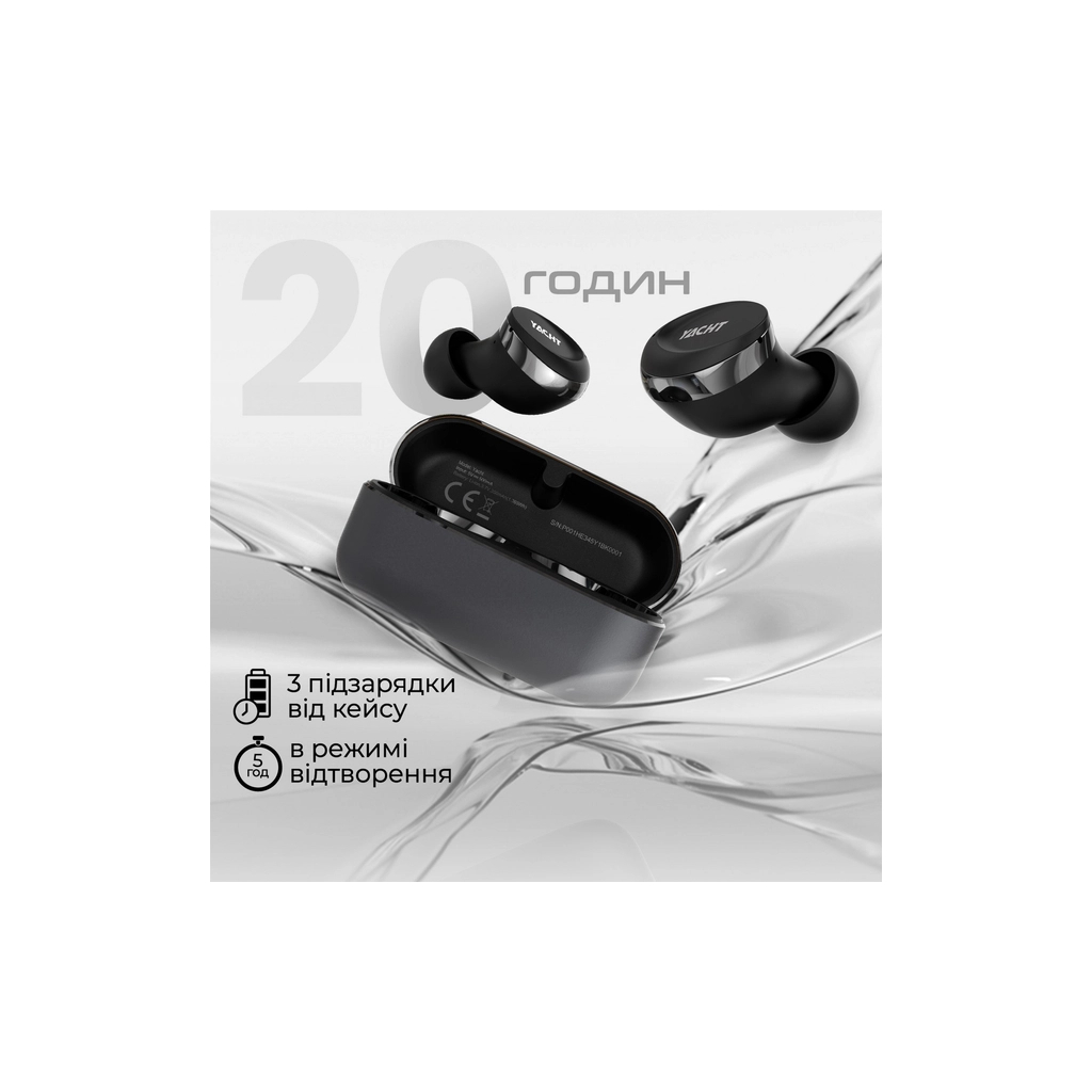 - 20 годин автономної роботи: Yacht будуть програвати музику 5 годин, а за допомогою кейса ти зможеш їх підзарядити до 3 разів.