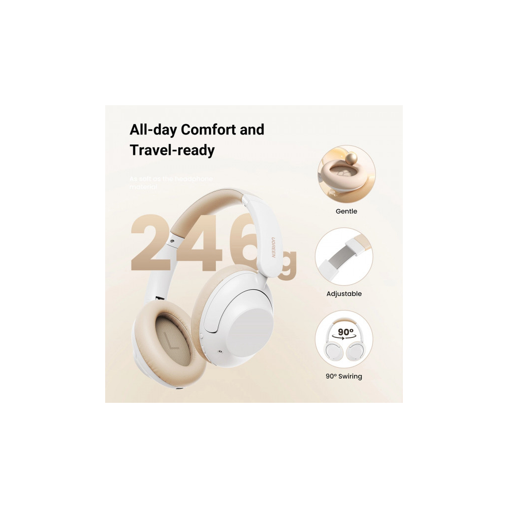 Навушники Ugreen HP202 HiTune Max5 Hybrid ANC White – це ідеальне рішення для тих, хто цінує якість звуку та комфорт. Ці повнорозмірні навушники з активним шумозаглушенням забезпечують відмінне звучання та зручність використання, підходять для телефону, телевізора та ноутбука.