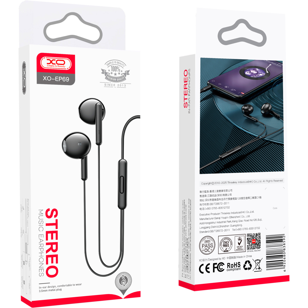 Навушники XO EP69 Black – це ідеальне рішення для тих, хто цінує якісний звук і комфорт. Дротові вкладиші з мікрофоном забезпечують чудову чутливість та зручність використання, що робить їх ідеальними для телефонних розмов та прослуховування музики на ноутбуках.