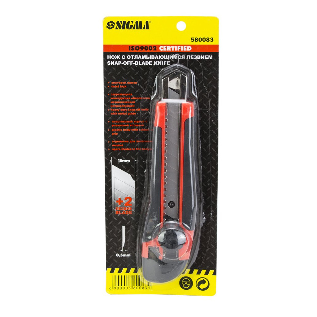 Ніж монтажний Sigma – це універсальний інструмент, який ідеально підходить для роботи з лінолеумом, ковровими покриттями, плівкою та пакувальними матеріалами. Завдяки своєму сегментованому лезу шириною 18 мм, цей ніж забезпечує точність та легкість у використанні. Корпус виготовлений з високоякісного пластику та гуми, що гарантує надійність та зручність під час роботи. Гвинтовий замок забезпечує надійну фіксацію леза, що робить його безпечним у використанні. У комплекті йдуть два леза, що дозволяє довше користуватися інструментом без необхідності частого їх заміщення.