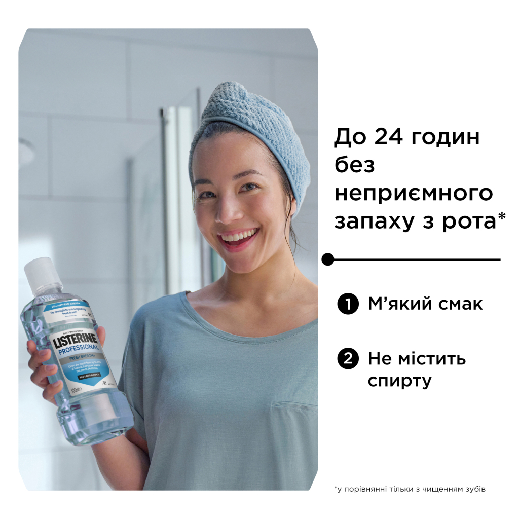Ополіскувач для порожнини рота Listerine Professional Свіжий подих+ – це ефективний засіб для щоденного догляду за ротовою порожниною. Він має антибактеріальні властивості, очищає, освіжає дихання та допомагає зменшити кровоточивість ясен. Продукт підходить для дорослих та дітей з 12 років, забезпечуючи надійний захист від зубного каменю та карієсу.