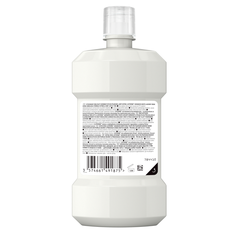 Listerine Ультравідбілювання — ополіскувач для ротової порожнини з м’яким смаком.