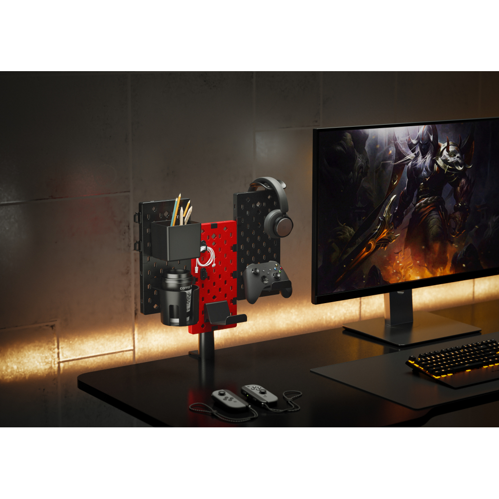 Органайзер для столу OfficePro – це ідеальне рішення для організації вашого робочого простору. Завдяки своїй конструкції, він дозволяє зручно зберігати навушники, геймпади, канцелярські приладдя та інші аксесуари, що робить його незамінним для геймерів та офісних працівників. Червоно-чорний колір надає сучасного вигляду, а металевий матеріал забезпечує довговічність.