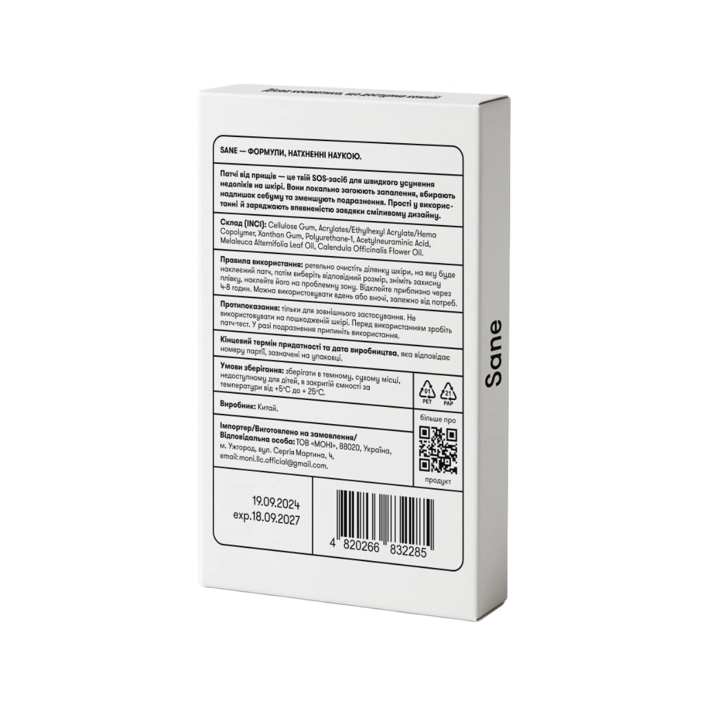 Патчі для обличчя Sane Black Heart Від прищів – ефективний засіб для заспокоєння шкіри та боротьби з запаленнями. У комплекті 36 патчів, які підходять для всіх типів шкіри. Цей продукт розроблений для швидкого усунення прищів та покращення загального стану шкіри, що робить його ідеальним вибором для щоденного догляду.