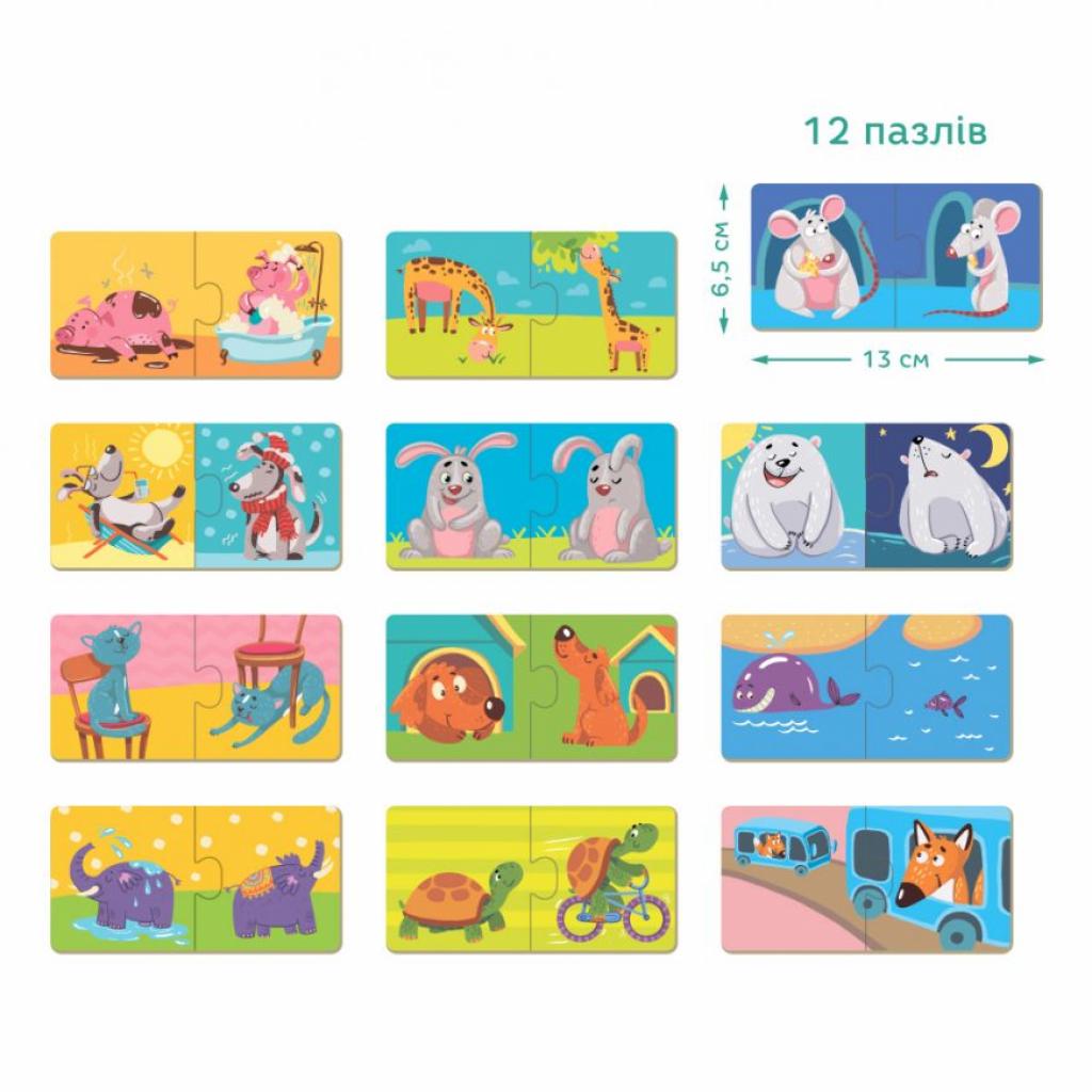 Пазл DoDo Протилежності (300151) – це чудова гра для дітей, яка допомагає розвивати логічне мислення та увагу. У наборі ви знайдете 12 пазлів, кожен з яких складається з двох елементів. Завдання полягає в тому, щоб знайти пару для кожного елемента, що дозволяє створити 12 різних тварин. Розміри кожного пазла складають 13 х 6.5 см, що робить їх зручними для маленьких ручок. Цей картонний пазл підходить для дітей від 3 років і є універсальним для хлопчиків та дівчаток.