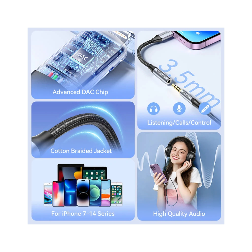 Перехідник Lightning to 3.5mm довжиною 0.1 м від бренду Vention – ідеальне рішення для підключення ваших аудіопристроїв. Цей перехідник має роз’єм 3.5 мм jack (F) та Lightning, що робить його універсальним для використання з телефонами та планшетами. Завдяки своїй котоновій обплетці та алюмінієвому корпусу, він забезпечує надійність та довговічність. Вироблений в Китаї, цей перехідник поєднує в собі стильний дизайн та високу якість звуку.