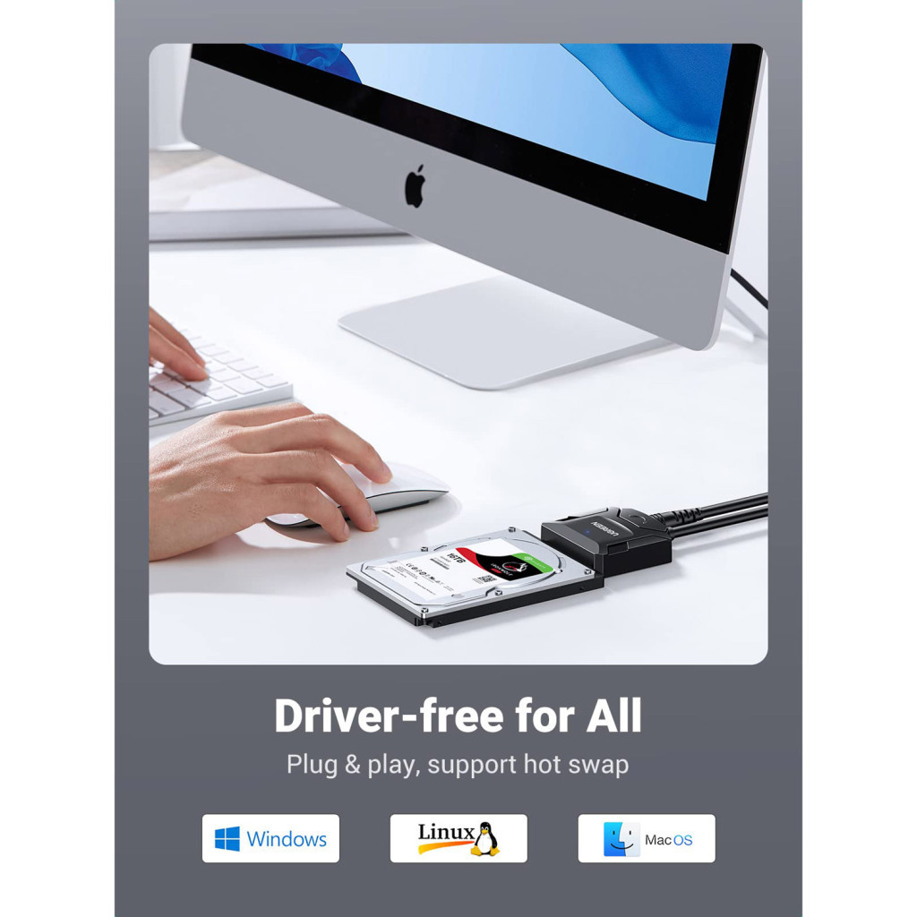Перехідник USB 3.0 Type-А to SATA III (F) CR108 від Ugreen – це ідеальне рішення для швидкої передачі даних між вашими пристроями. Цей адаптер дозволяє підключати SATA III жорсткі диски та SSD до комп’ютерів, ноутбуків і телевізорів через USB 3.0, забезпечуючи високу швидкість передачі даних та зручність використання завдяки функції plug-and-play.