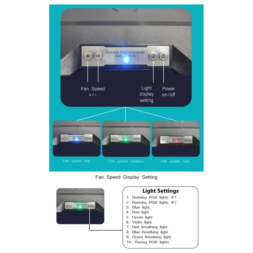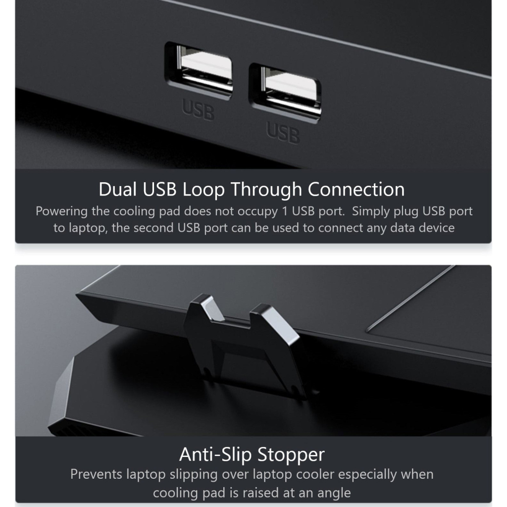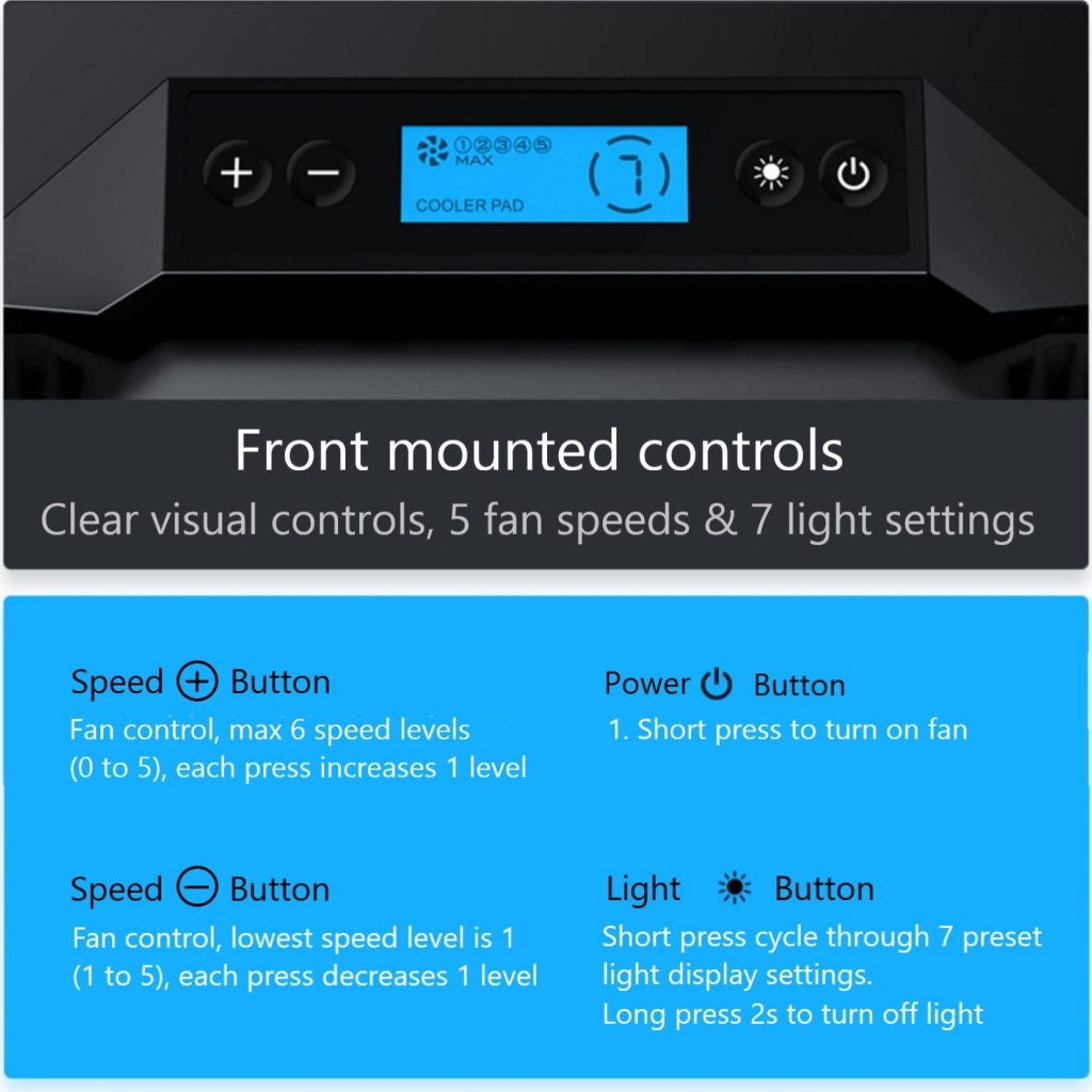 Розміри підставки складають 400 х 350 х 45 мм, що робить її компактною та зручною для використання. Виготовлена з якісного пластику, вона має стильний чорний колір. Підставка оснащена LCD дисплеєм для відображення інформації про швидкість обертання вентиляторів, а також двома USB-роз'ємами для підключення додаткових пристроїв.