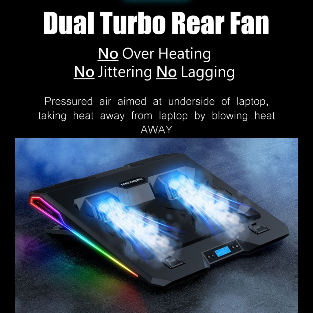Підставка до ноутбука IceCoorel 10-15.6" – це ідеальне рішення для охолодження вашого ноутбука з діагоналлю екрану до 15.6 дюймів. Завдяки активному методу охолодження та двом вентиляторам з швидкістю обертання 2800 RPM, вона забезпечує ефективне охолодження під час тривалої роботи або ігор.