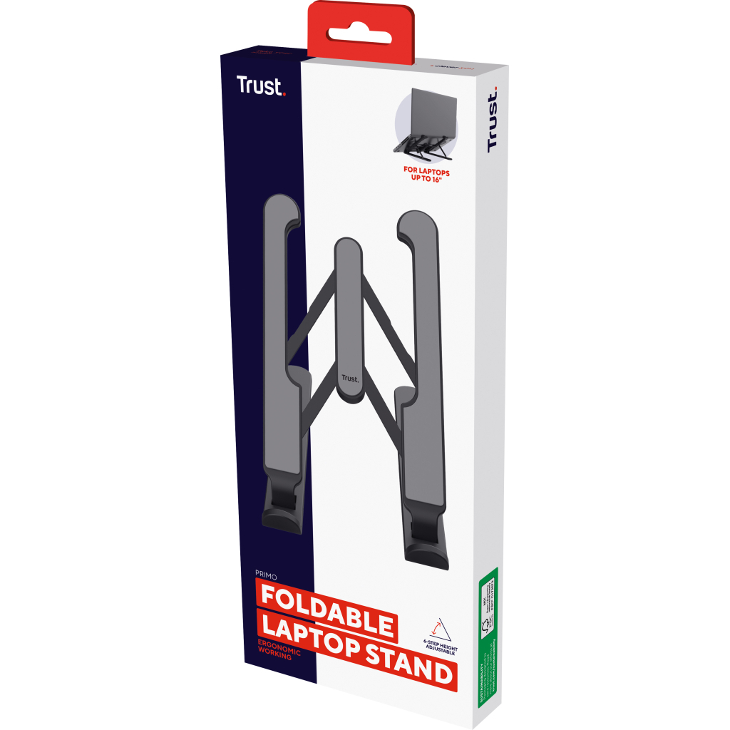 Trust Primo 25379 — це просте, але ефективне рішення для підвищення ергономіки вашої роботи за ноутбуком. Воно легке, регульоване, універсальне та пропонує добру якість за доступну ціну. Антиковзка поверхня з гумовим покриттям забезпечує фіксацію пристрою та запобігає зміщенню під час використання Підходить для ноутбуків до 16" (≈40.6 см), однаково сумісна з планшетами та телефонами 6 рівнів регулювання висоти, що допомагає підібрати оптимальне положення для роботи
