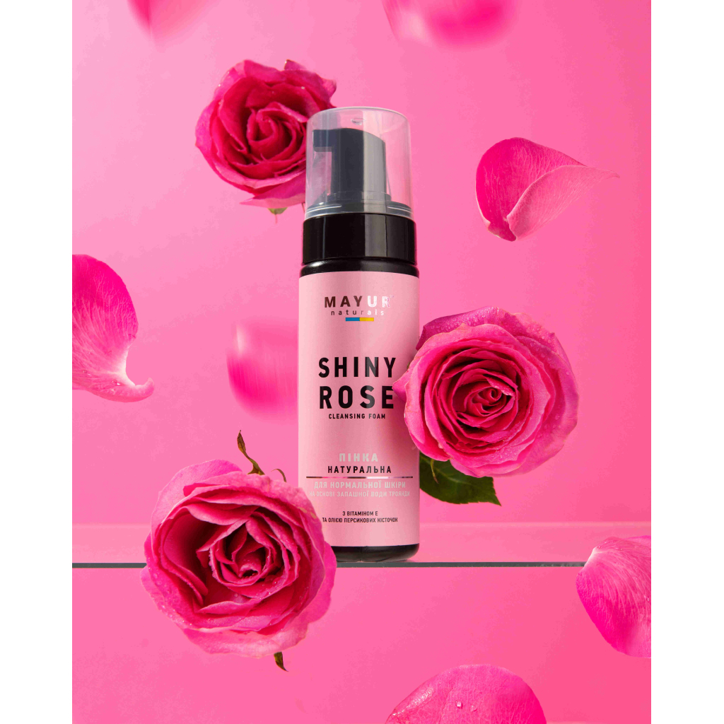 Основні характеристики пінки: об'єм 150 мл, виробник – українська компанія Mayur. Склад включає запашну рожеву воду, натуральні ПАР з оливкової та кокосової олії, гліцерин, пантенол, вітамін Е, олію зародків пшениці, ромашки та персикових кісточок. Пінка не містить шкідливих добавок і є безпечною для щоденного використання.