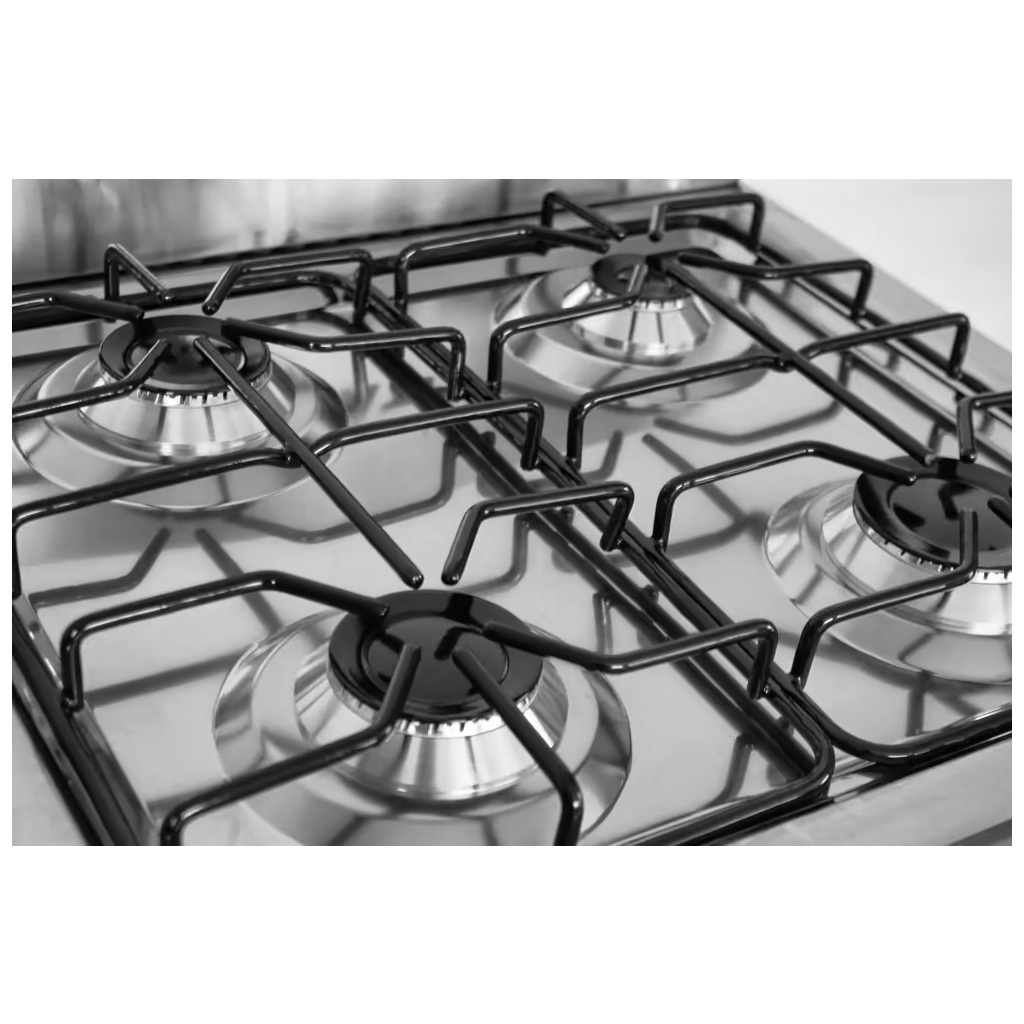 Основні технічні характеристики плити включають: 4 газові конфорки, газова духовка з корисним об’ємом 75 л, клас енергоспоживання А, а також електропідпал конфорок. Висота плити становить 85 см, ширина – 60 см, глибина – 60 см, а вага – 41 кг. Вона виготовлена з нержавіючої сталі, що забезпечує довговічність та легкість в догляді.