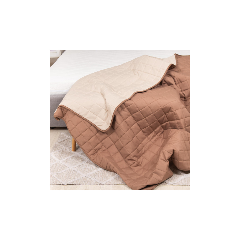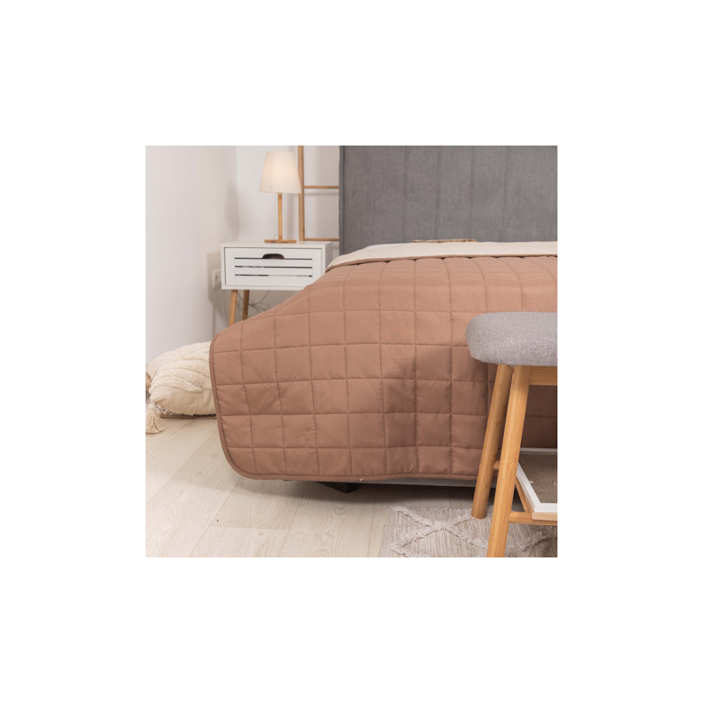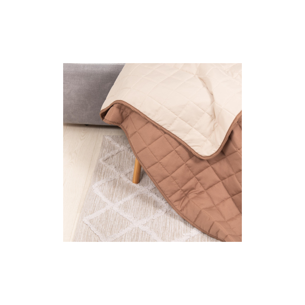 Покривало Viluta стьобане двостороннє Дует Капучино 210х240 – ідеальне рішення для вашого дому. Це всесезонне покривало забезпечить комфорт та затишок в будь-яку пору року. Його двосторонній дизайн та стильний коричневий колір легко впишуться в будь-який інтер'єр.