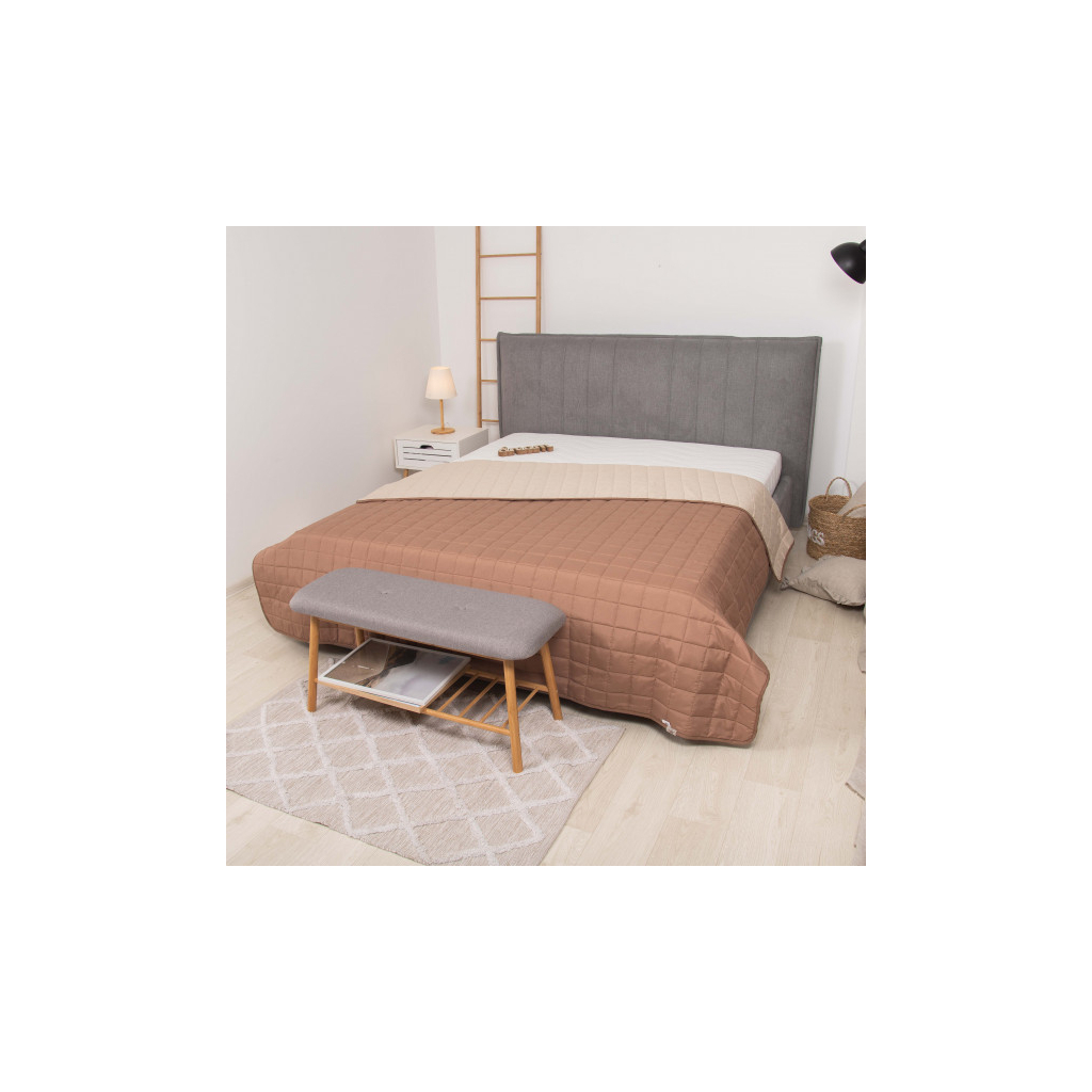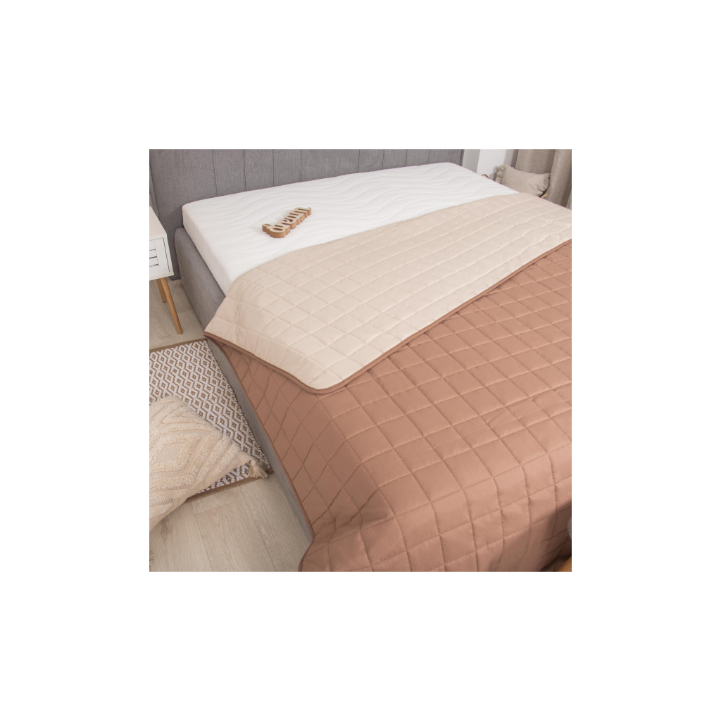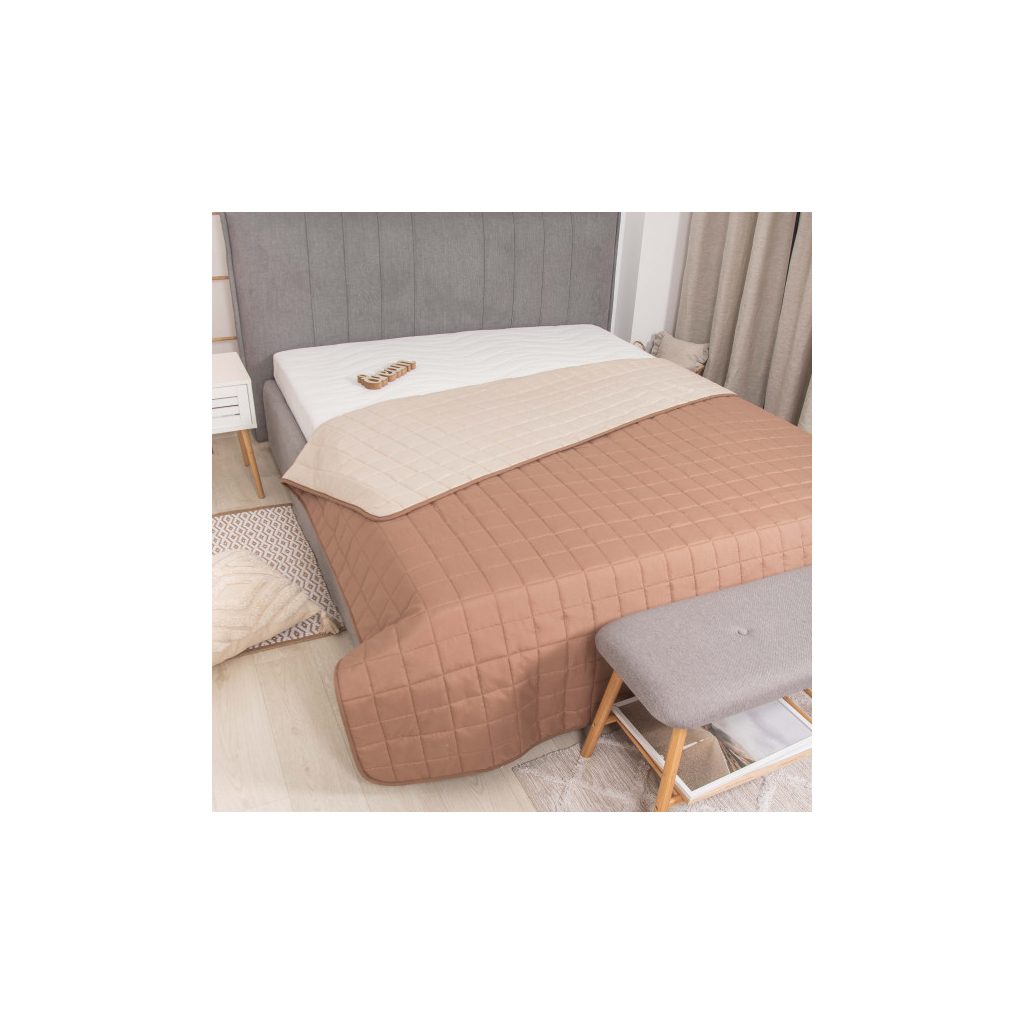 Покривало Viluta стьобане двостороннє Дует Капучино 210х240 – ідеальне рішення для вашого дому. Це всесезонне покривало забезпечить комфорт та затишок в будь-яку пору року. Його двосторонній дизайн та стильний коричневий колір легко впишуться в будь-який інтер'єр.